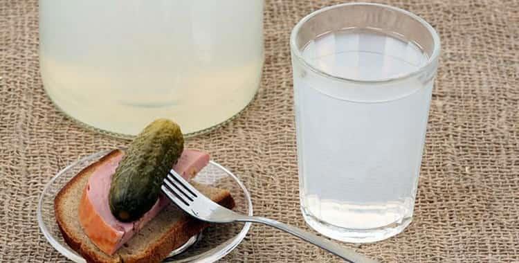 Автор: Николай БергСтакан самогона с огурцом (колбаса тут лишняя, у персонажей ее не было)