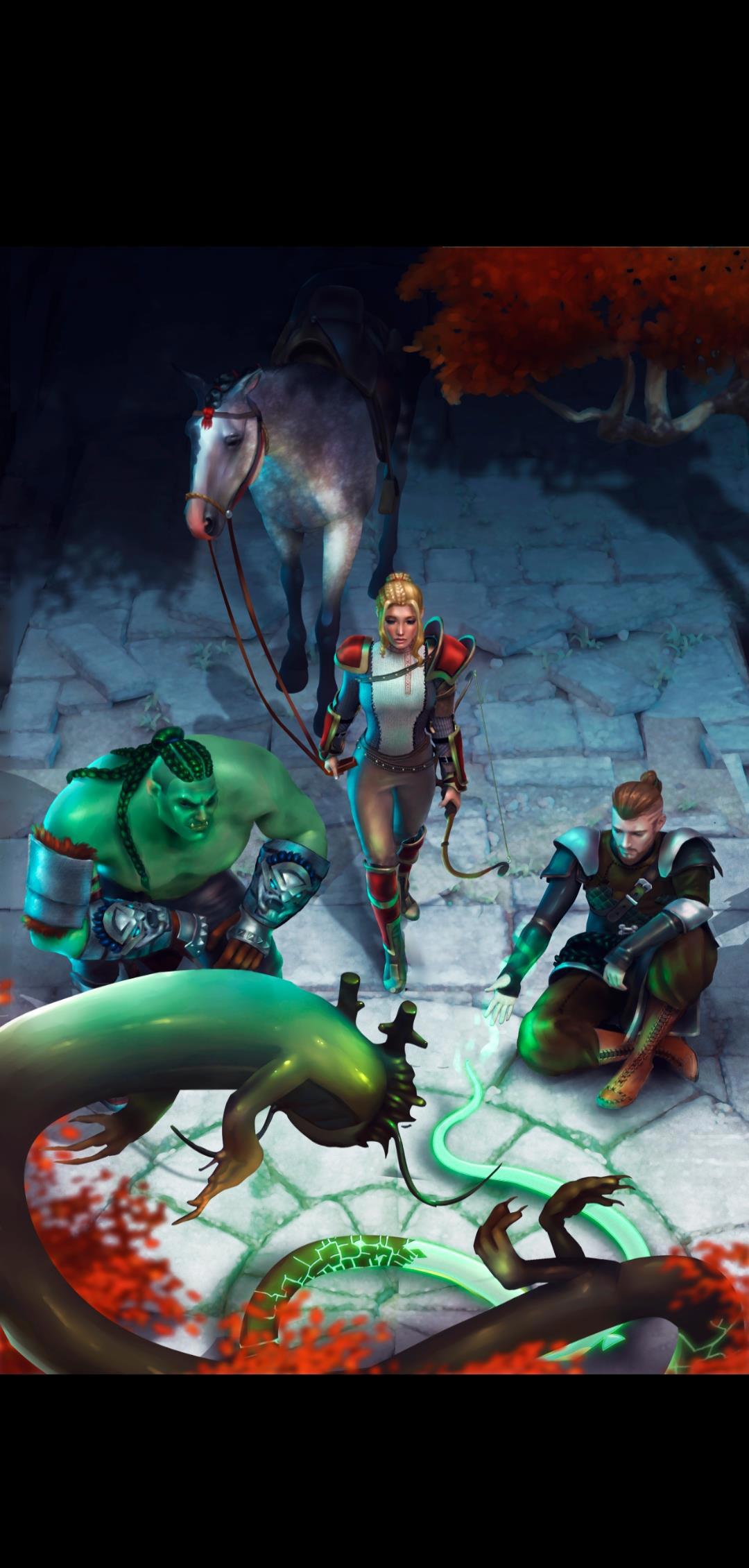 Очень сложная перспектива, т.к хотелось вместить по максимуму и лошадь, и персонажей и дракона.