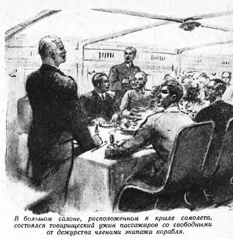 Андрей Петрович Родченко был, пожалуй, одной из центральных фигур киреевского коллектива. Бывший беспризорник, взятый на воспитание Киреевым, он окончил среднюю школу, а затем авиационный институт. Специализировавшись в области дизелестроения. он создал небывало экономичный дизель «Р-12», мощностью свыше 4 тысяч лошадиных сил. Четыре таких двигателя были установлены на гигантском самолете Киреева. Они размещались в передней кромке центральной части монопланного крыла. Это была двухфюзеляжная лодка, присоединенная к центроплану и огромному крылу. Первый этаж ее — трюм — предназначался под груз. В передних отсеках трюма размещалась шкиперская — такая же, как и на обычном корабле: с канатами, ведрами, якорями. Во втором этаже находились салон и спальные каюты, оборудованные каждая двумя удобными постелями. В киреевском воздушном экспрессе каждый пассажир имел достаточно воздуха, света, тепла и пространства, а в добавление к этим благам мог пойти в ресторан и даже принять ванну в полете. Наконец третий этаж внутри центроплана состоял из большого зала-салона, по бокам которого размещались каюты для экипажа. В передней кромке крыла, между центральными моторами, находилась «святая святых» воздушного корабля — центральный пульт управления. Причиной утреннего вызова в аэропорт явилось непредвиденное обстоятельство. Прибыло двадцать тонн груза государственной важности для одной из дальневосточных новостроек. Груз подлежал немедленной отправке.