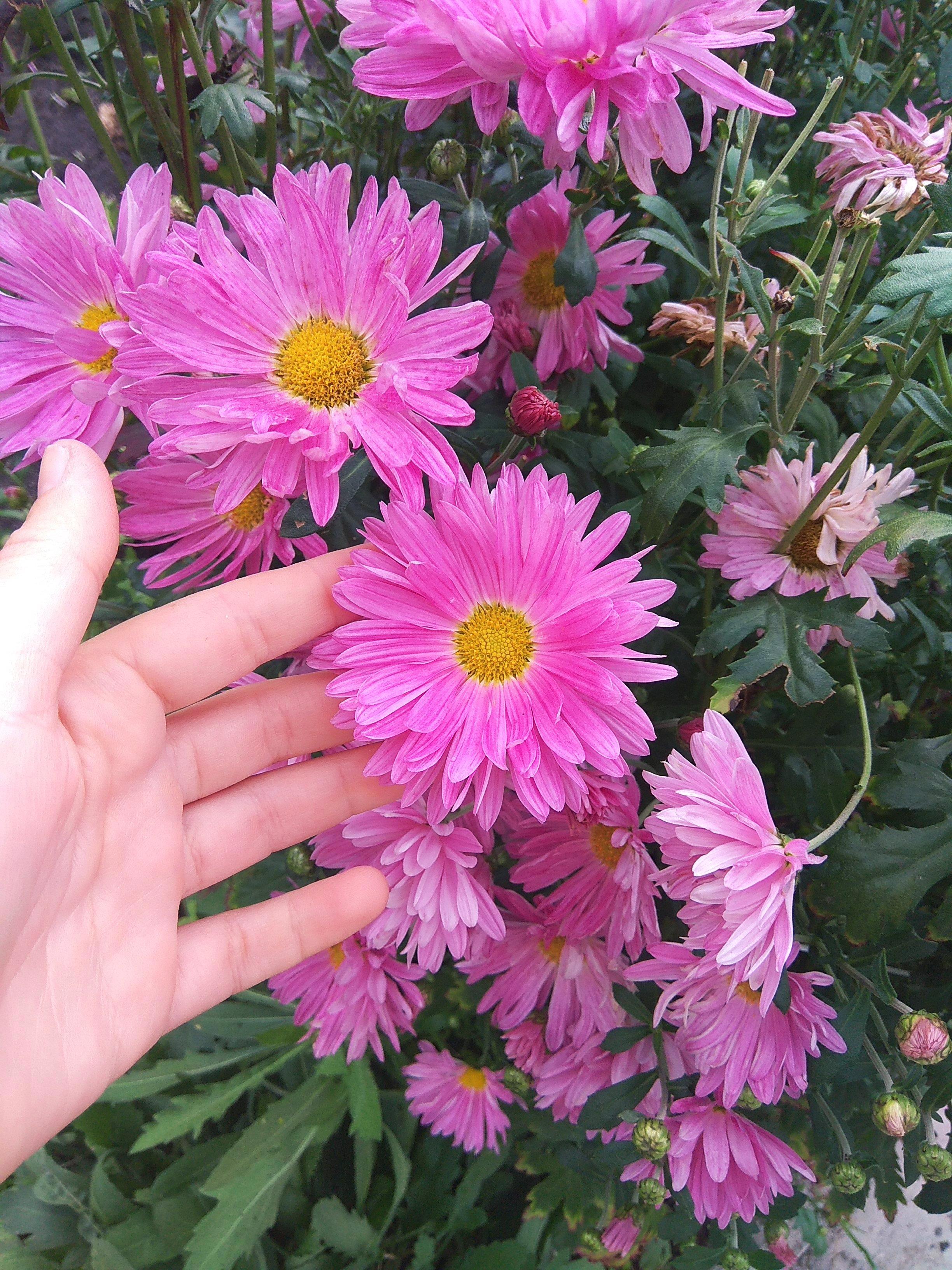 Хризантемы радуют своим разнообразием, девичий виноград стал еще ярче