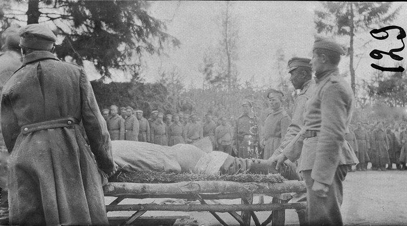 Подготовка солдата к наказанию розгами в одном из тыловых армейских подразделений. 1916 год.