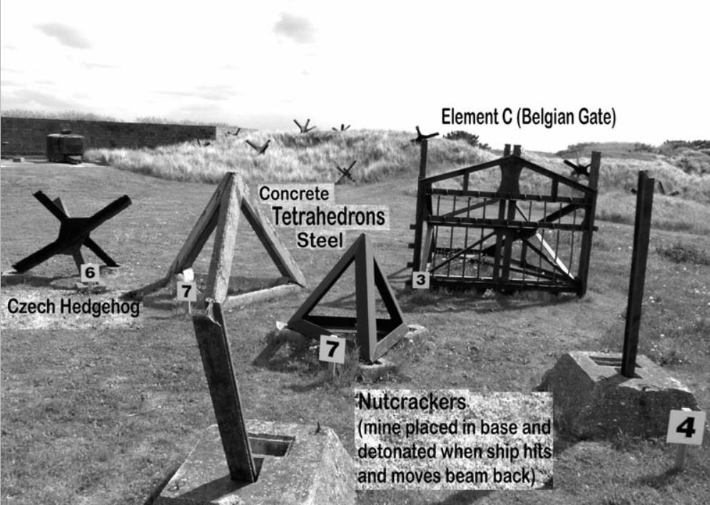 Тех же, кто решит высаживаться в момент прилива, под водой ждали сотни тысяч наклонно вкопанных в грунт стволов деревьев. Иногда на верхушке закрепляли противотанковую мину. Более сложный вариант именовался Hemmbalken и представлял собой пирамиду, на которую опиралось очередное бревно, а уже к нему крепились металлические зубцы, чтобы лучше цеплять днище. Ну и противотанковую мину тоже крепили, если была под рукой.