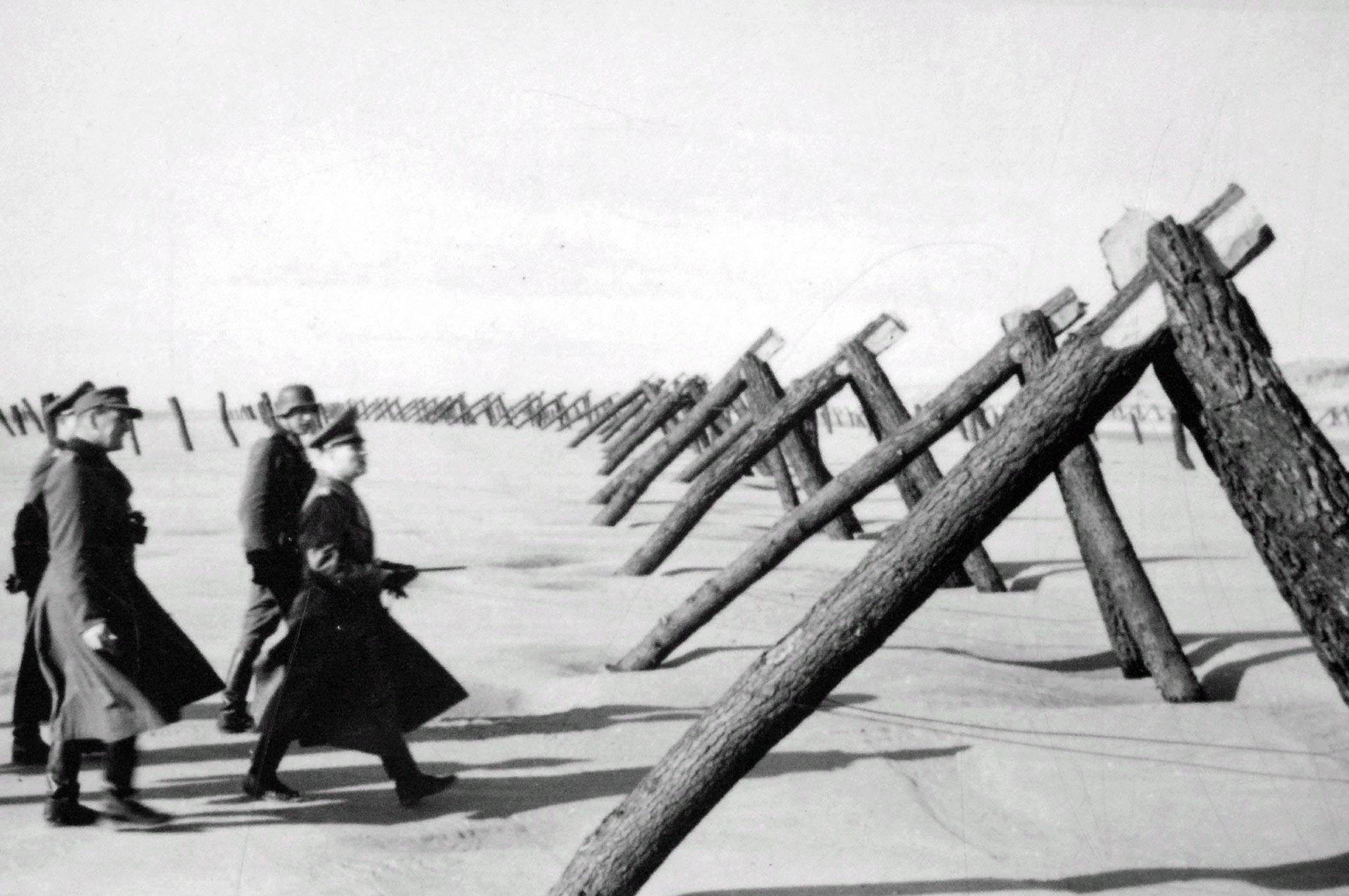 Дальше вперемешку шли бетонные и стальные пирамидки, знакомые всем нам про фильмам о битве за Москву противотанковые ежи и, наконец, тех, кто все-таки сумел бы добраться до берега выше точки прилива, гостеприимно поджидали ряды кольев с колючей проволокой.