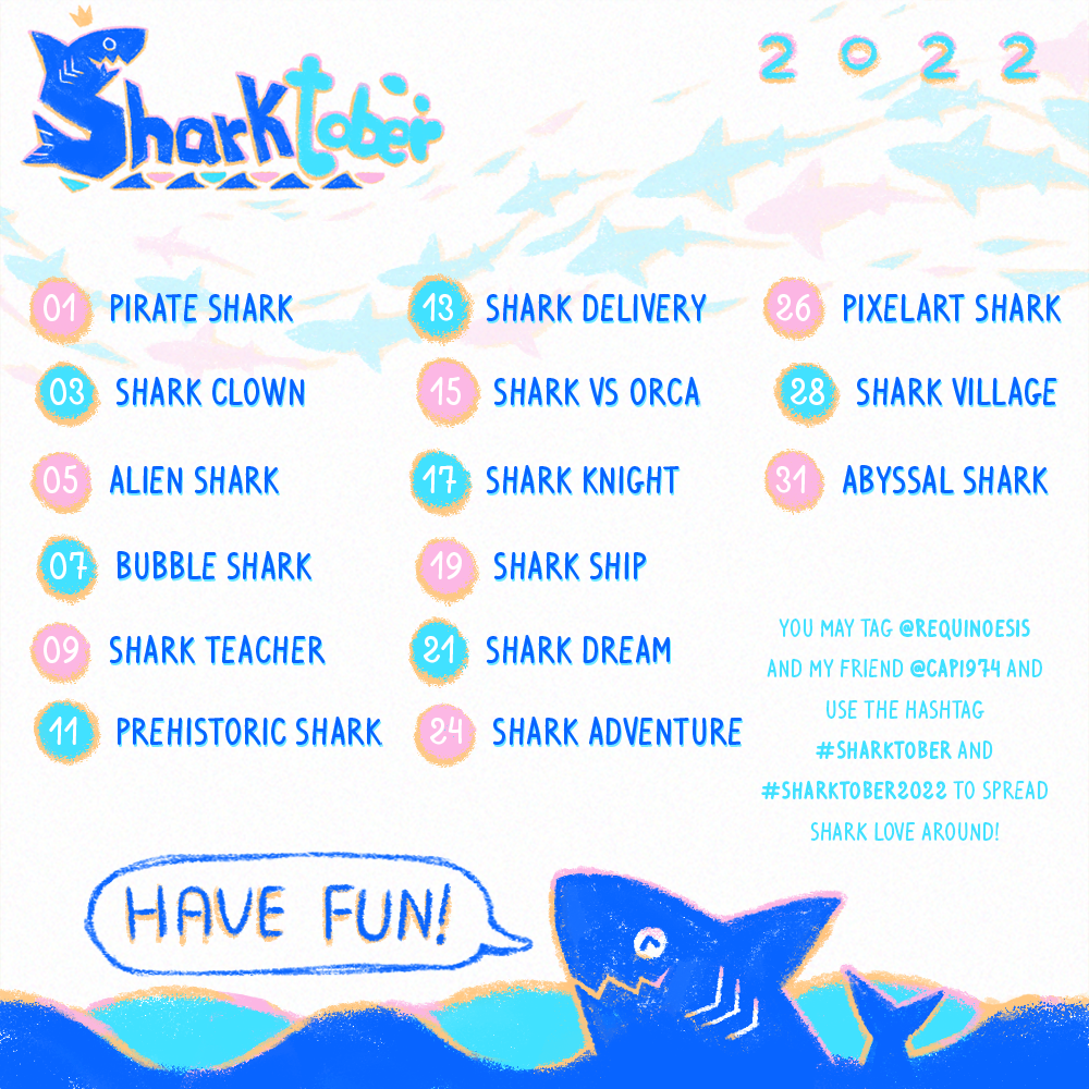 В этом году я решил взять перерыв, точнее решил участвовать не в самом инктобере, а в одной из его вариаций - Шарктобере (Sharktober):