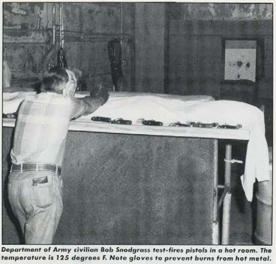 Когда армейские специалисты получили возможность заглянуть в результаты испытаний AFAL, то их реакцию было довольно сложно описать в рамках цензурных выражений. Так, в испытаниях на живучесть и безотказность образец Beretta давал одну задержку на 2000 выстрелов, образец от Smith & Wesson – одну на 1952, а взятые в качестве контрольного образца штатные М1911А1 остреливали без задержки всего лишь 748 патронов. Казалось бы, превосходство новых пистолетов проявилось нагляднее некуда. Однако армейцы еще помнили, как в начале века на тогдашних испытаниях прототип М1911 отстрелял без единой задержки 6000 выстрелов. Детальное изучение процедуры вызывало еще больше вопросов. На испытаниях четыре "контрольных" М1911А1 выпустили 34400 патронов, дав 46 задержек. Из них 32 были связаны с подачей патронов, 8 невыбросов гильзы, одна осечка и 5 помеченных как "другие". Даже не беря в расчет, что в качестве контрольных были взяты пистолеты с неизвестной степенью износа – опытные "операторы" армейских "кольтов" прекрасно знали, что проблемы с подачей у этой модели означают либо неисправные магазины либо некачественные боеприпасы. Не могли этого не знать и в AFAL. При этом, если вычесть эти 32 спорные задержки, получалось, что старички показали одну задержку на 2457 выстрелов, превзойдя все предлагаемые варианты. Имелись у армии вопросы также к тестированию в затрудненных условиях – запыление, нагрев, заморозка и прочие радости службы.