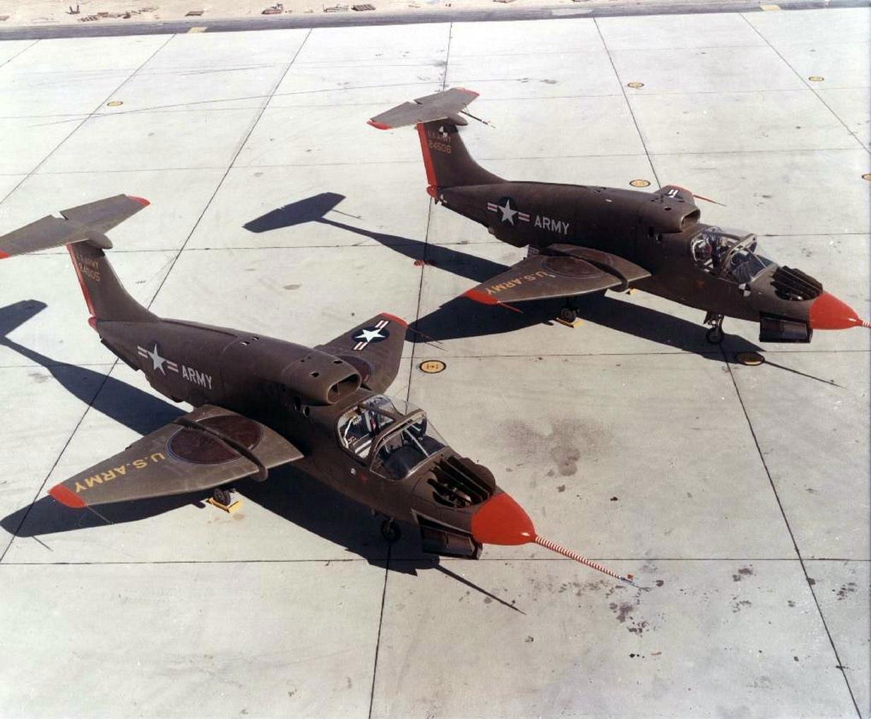 Но пока эти три самолетика только готовились летать, в споре двух «силовых структур» произошел качественный скачок. После трех лет «нытья, жалоб и ругани» армии удалось добиться пересмотра соглашения. В 1952 году ВВС нехотя согласились поднять лимит армейских самолетов до 5000 фунтов (2268 кг). В эту массу можно было впихнуть уже не только летающие скорлупки, но и нечто более существенное – с реактивным движком. Или движками, это как получится.