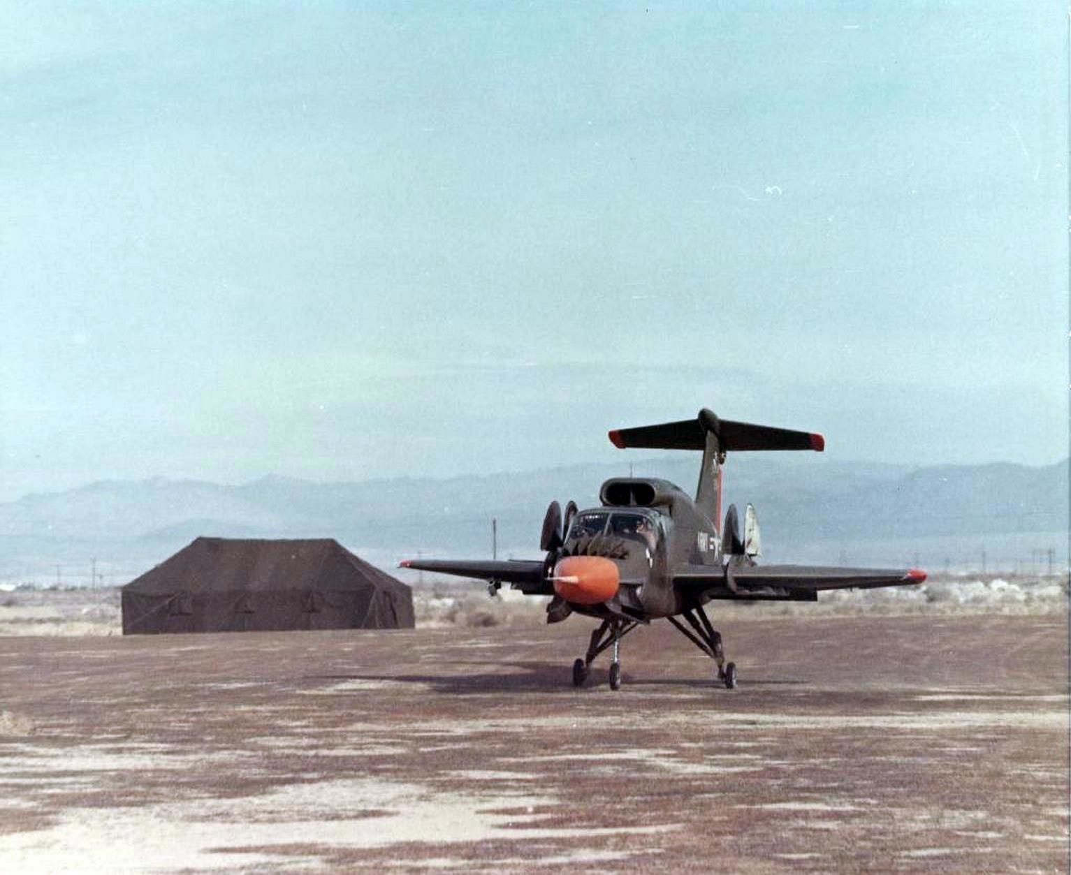 Вторым кандидатом на роль «крыльев армии» стал самолет с «говорящим» названием XV-5 Vertifan (вертикальный вентилятор) от уже знакомой компании Ryan Aeronautical Co. Как и в случае с первым самолетом, на «райане» решили не морочить себе голову какими-то там поворотными системами. Вместо этого самолет получил два обычных турбореактивных двигателя General Electric J85-GE-5. При этом за «вертикальную» часть полета отвечали три… вентилятора, два из которых устанавливались в крыльях, а еще один, поменьше – в носовой частит фюзеляжа. Со всеми этими свиристелками и прочим, масса пустого самолета перевалила за 5 тонн, однако наблюдавшие за проектом армейцы решили, что как-нибудь утрясут вопрос – лишь бы оно взлетело!