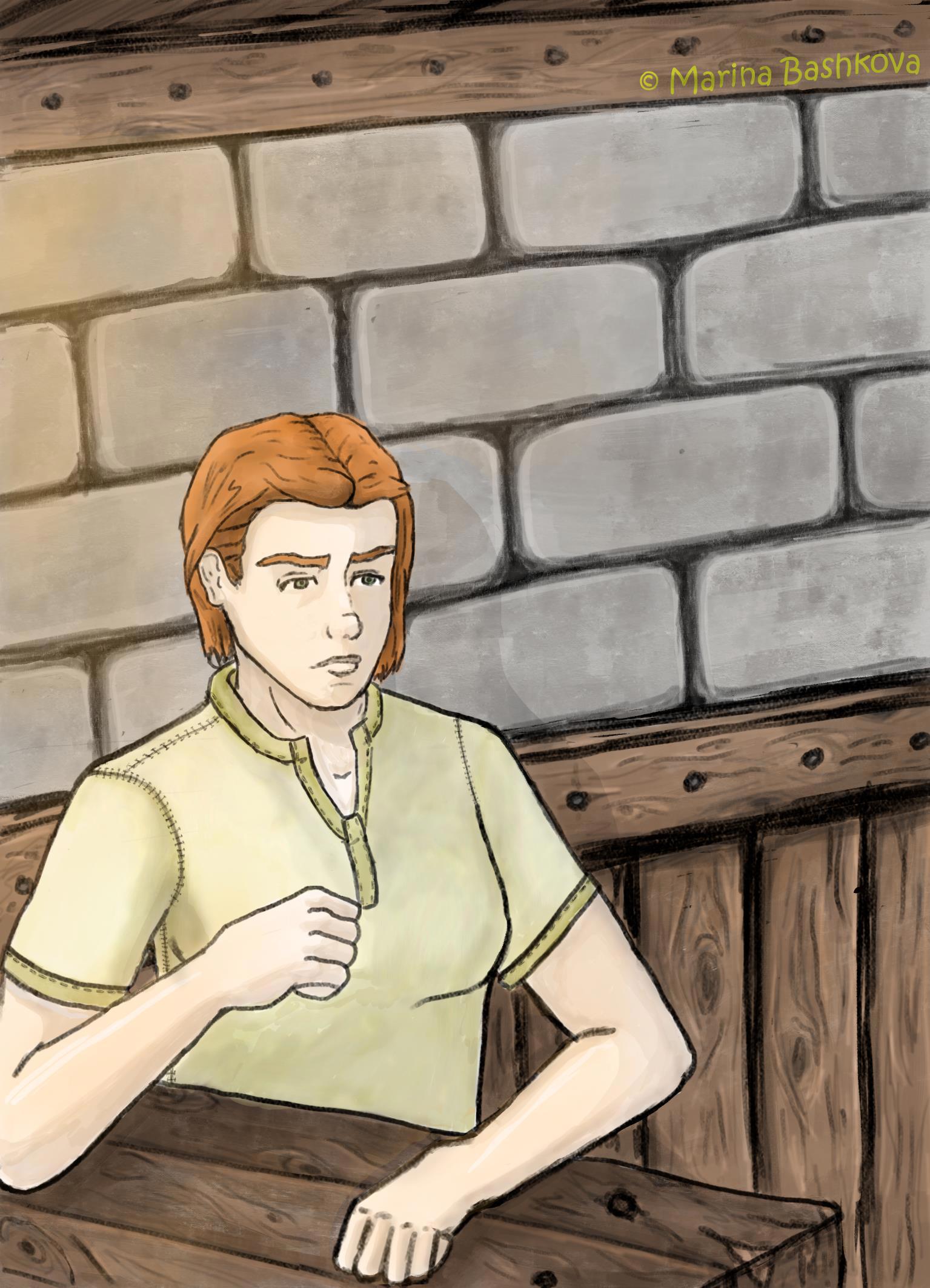 В дальнем углу трактира, расположенном за лестницей, сидела невысокая девушка. Угол этот она выбрала неспроста, именно здесь можно было спокойно находиться, не привлекая к себе лишнего внимания и не бросаясь в глаза многочисленным посетителям, пришедшим сюда. На ней были высокие кожаные сапоги, холщовые штаны, заправленные под голенище, и льняная рубашка. На правой руке красовался деревянный браслет, оплетающий кисть тонкой спиралью, с инкрустированным в него неприглядным лазурным камнем. У девушки были по-мальчишески короткие рыжие волосы и серо-зеленые глаза. Она была частым гостем здесь и хорошо знала Ергера.