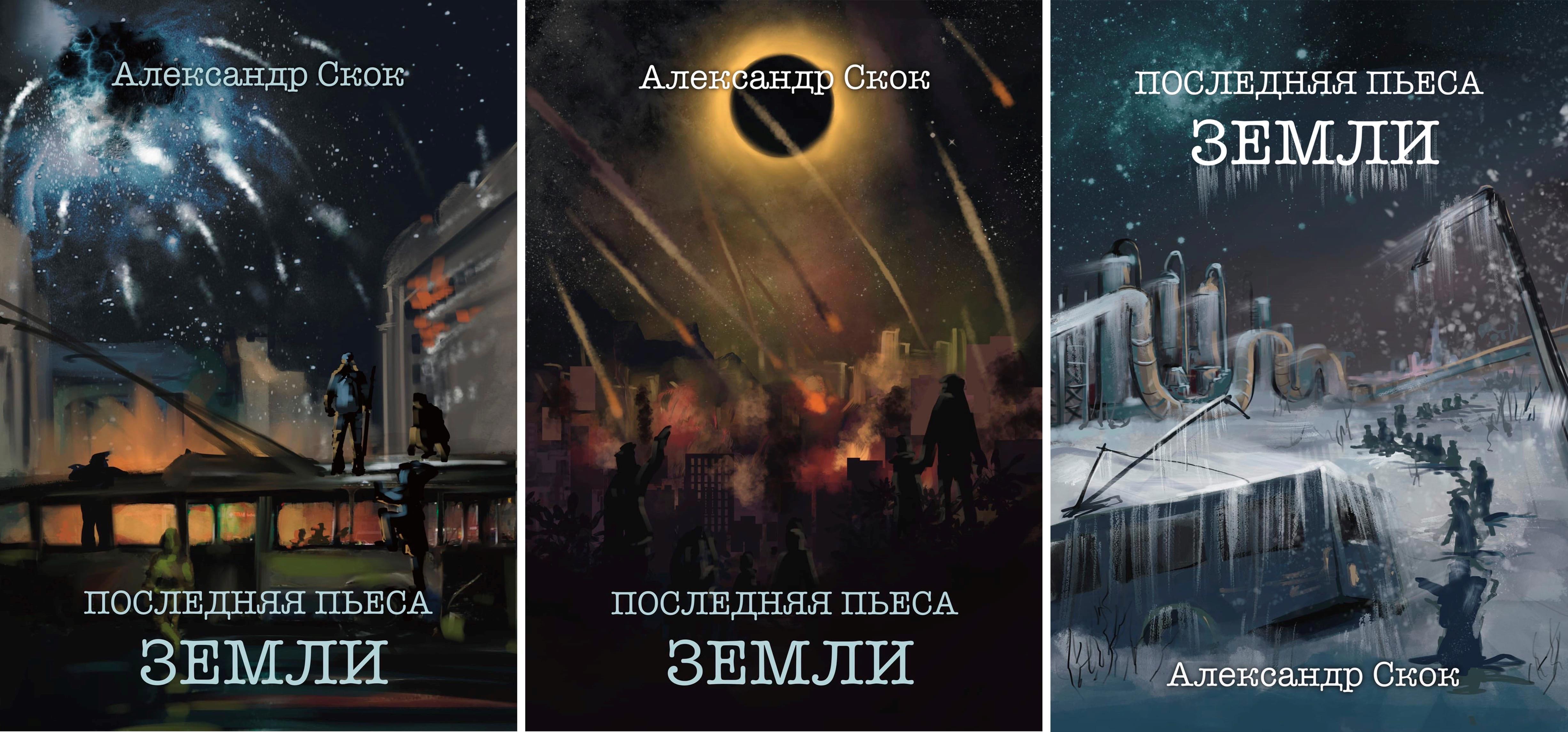 Автор: ElianНаконец-то могу показать работу, которую выполнила в этом месяце. Обложка для романа Александра Скока "Последняя пьеса Земли" . Задание под текущее настроение: на обложке нужно было изобразить Апокалипсис. Вот такие три эскиза на выбор у меня получились: