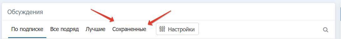 - Появился список «Сохраненные» (или избранных постов) в разделе Обсуждения