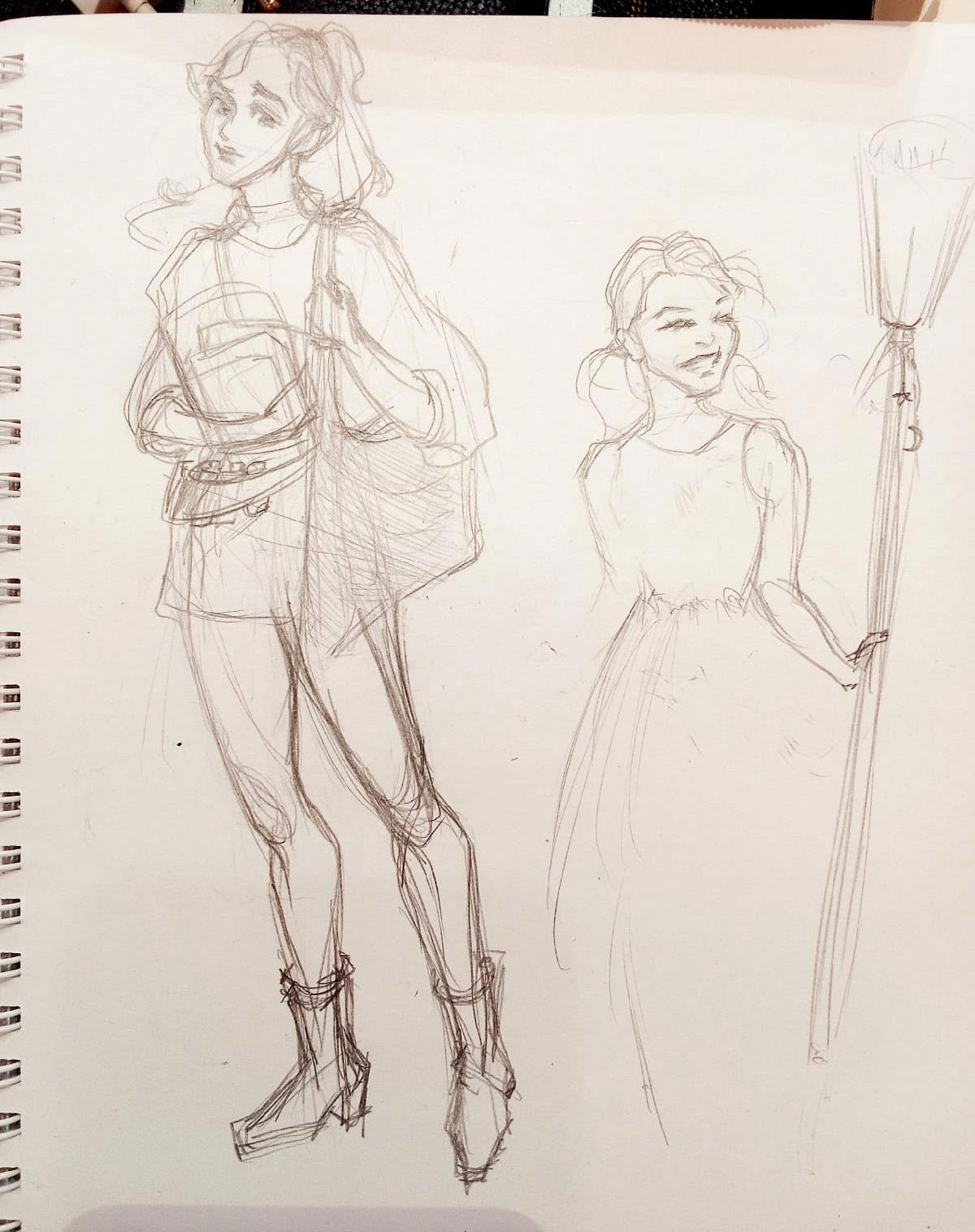 Старшую, что радует, рисовала без использования референсов, а вот с младшей оказалось уже не так легко. Знала, что детей сложно рисовать. Оказалось, что по воображению не сумею этого . Главная задача была изобразить персонажей разного возраста, характера и специализации, так сказать. После переноса скетча в диджитал и небольшой доработки: