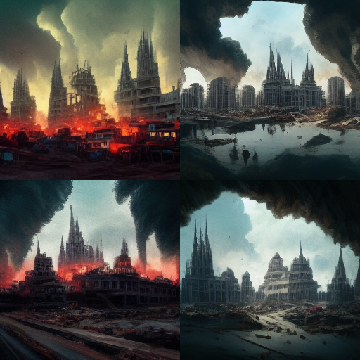 Неплохой, хоть и не похожий постапокалиптический пейзаж вышел. Может пригодится в будущем )) Может, так и стоит пользоваться нейросетями: сперва создавать арт, а потом текст?