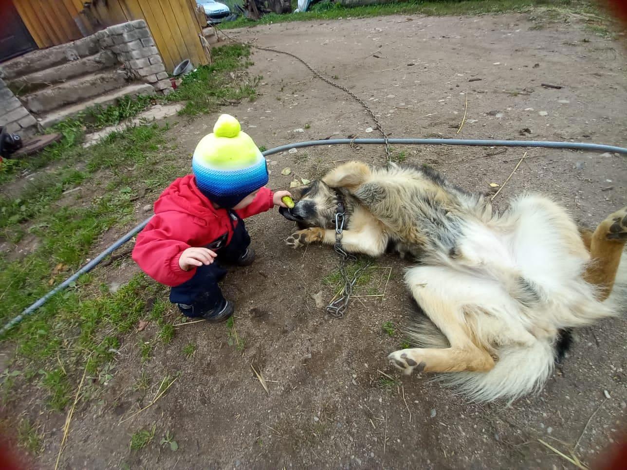 Он нашел сам в огороде последний огурец и потом пытался его скормить Тишке. Пока тот не унес и не сгрыз его.