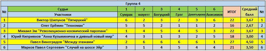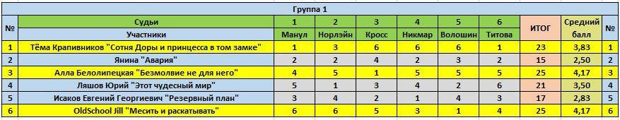 В финал из каждой группы выходят по два рассказа – занявшие 1 и 2 место.