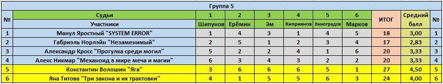 На сей раз участников 30 и получилось 5 групп по 6 авторов.