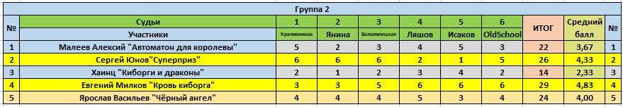 Группа №2 - Ярослав Васильев выходит в финал, как набравший наивысший средний балл среди оставшихся. Поздравляю
