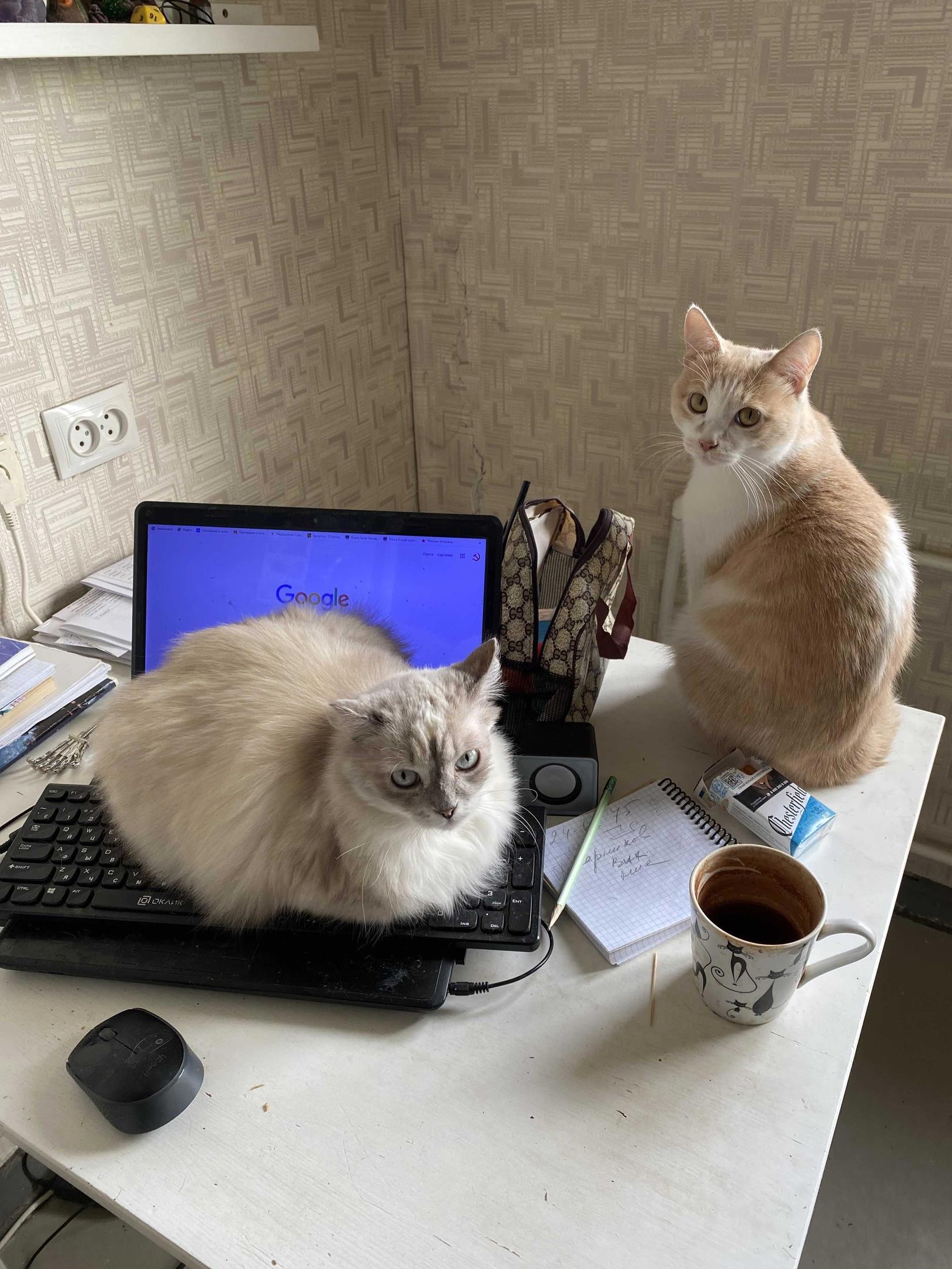 А котики - для привлечения внимания. Дескать: "Какие проблемы, хозяйка? Чего не нравится?"