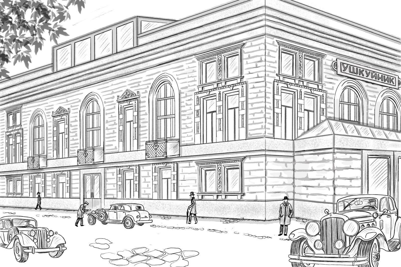 «А в «Ушкуйнике» кроме кабинетов, была ещё и маленькая застеклённая терраса на четыре столика, с которой открывался красивый вид на город.»