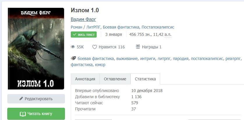6. Осваиваю новый литературный портал Libstation. Начал выкладывать «Излом 1.0», так что будет приятно, если вы заглянете. Кстати, там же есть старая рецензия на книгу «Мефодий Буслаев. Книга семи дорог», кому интересно, почитайте.