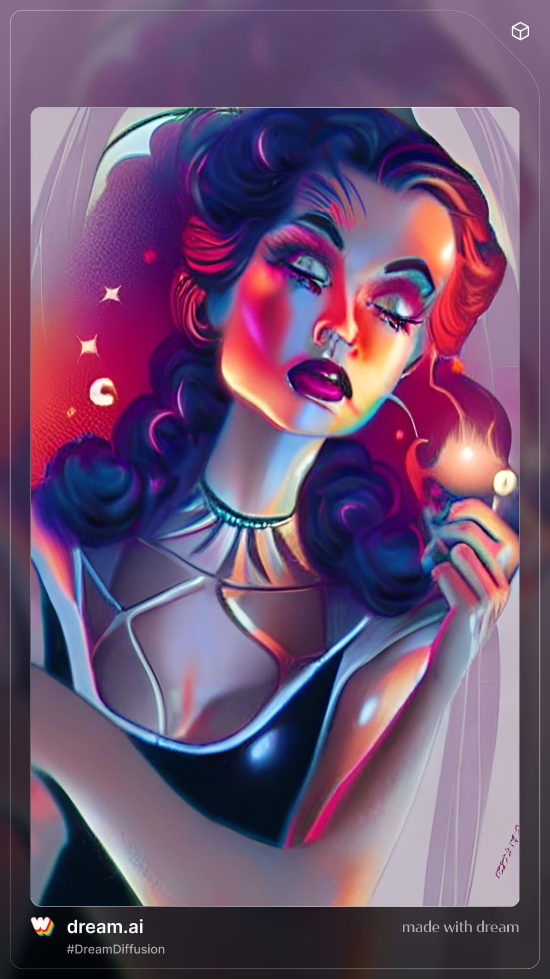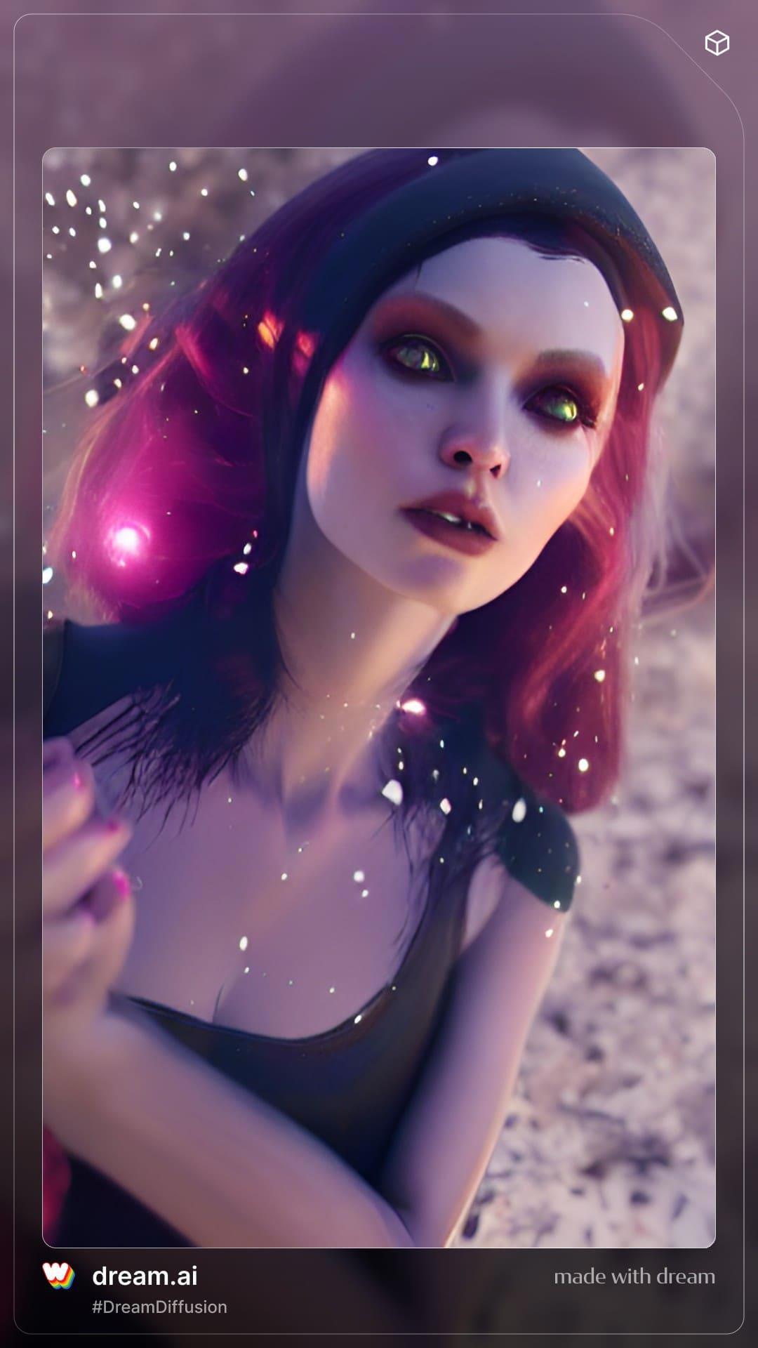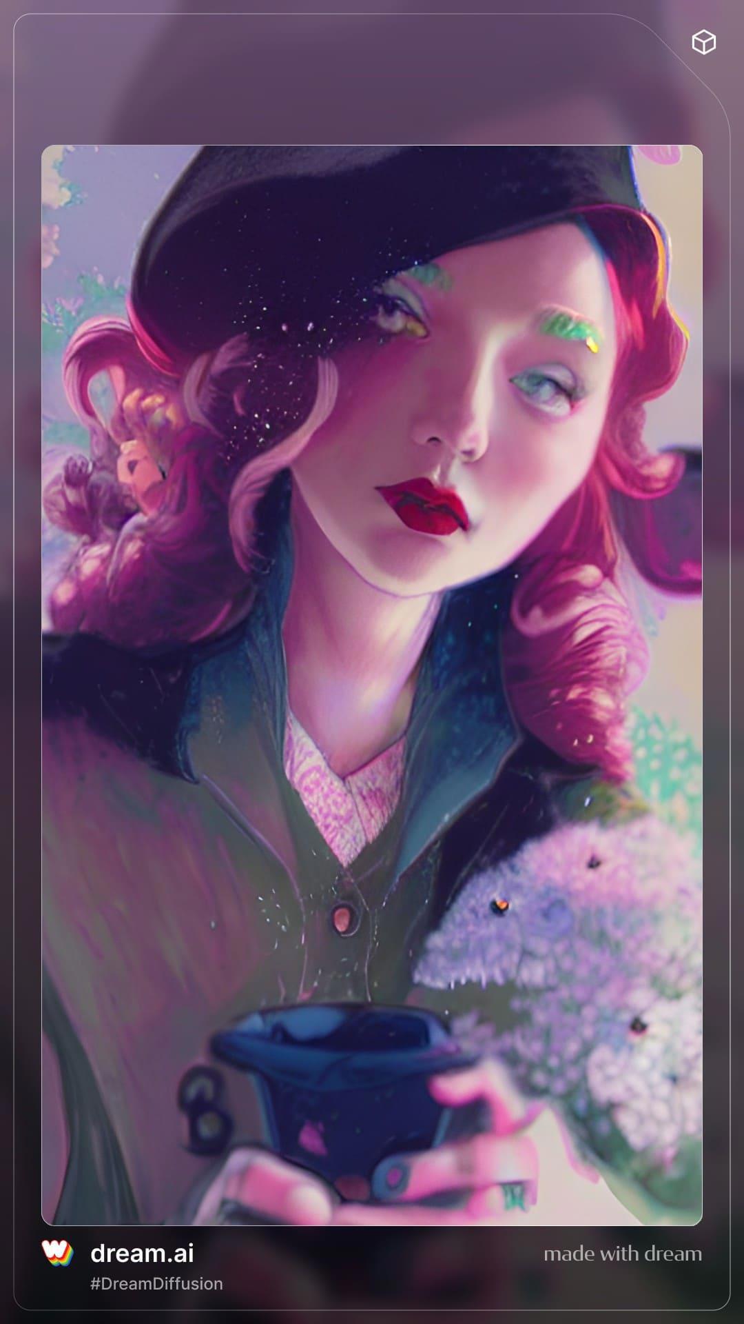 Тут я решила поиграться, и в качестве референса взять изображение, сгенерированное одним из старых фильтров Вомбы (Мистик). Собственно, зачем и почему? Потому что получаются весьма интересные цветовые решения у этой мазни. И если ее потом скормить Вомбе повторно, то результат тоже будет более красочным. Судя по очертаниям, портрет получится навряд ли... ну и ладно)) Я просто хочу показать что выходит)