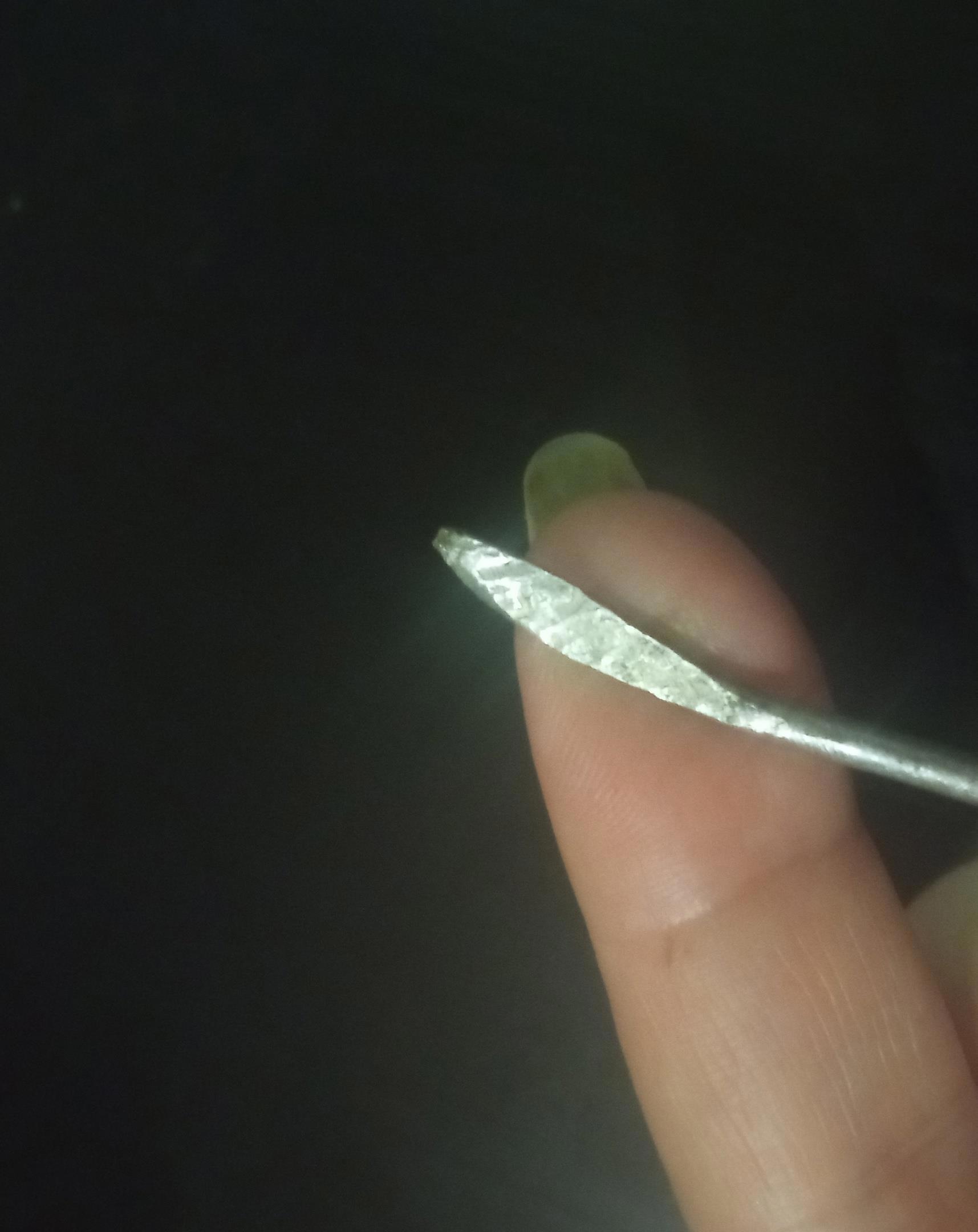 Когда-то эта штука была спицей, ну, такой спицей, для вязания. Знаете же, всякие шарфики, носочки и тому подобное. Вязать, к слову, я тоже люблю, но занимаюсь этим довольно редко. А вот всякую фигню разбираю и собираю часто. Но так как живу я не одна, а разбирать и собирать фигню желающих много, инструментов у меня никогда нет. Точнее, они-то были все когда-то, но прежде чем приступить к ремонту, следует побегать по двору и поискать, что и куда там могло завалиться. Причём, отыскать нужную отвёртку получается редко. Подозреваю, что их кто-то жрёть! Возможно, коты. Они всё жруть. Так вот, чтобы что-то разобрать, мне обычно требуется сначала изобрести инструмент, которым всё это можно разобрать. И вот эта гнутая штука на фото - универсальная отвёртка.