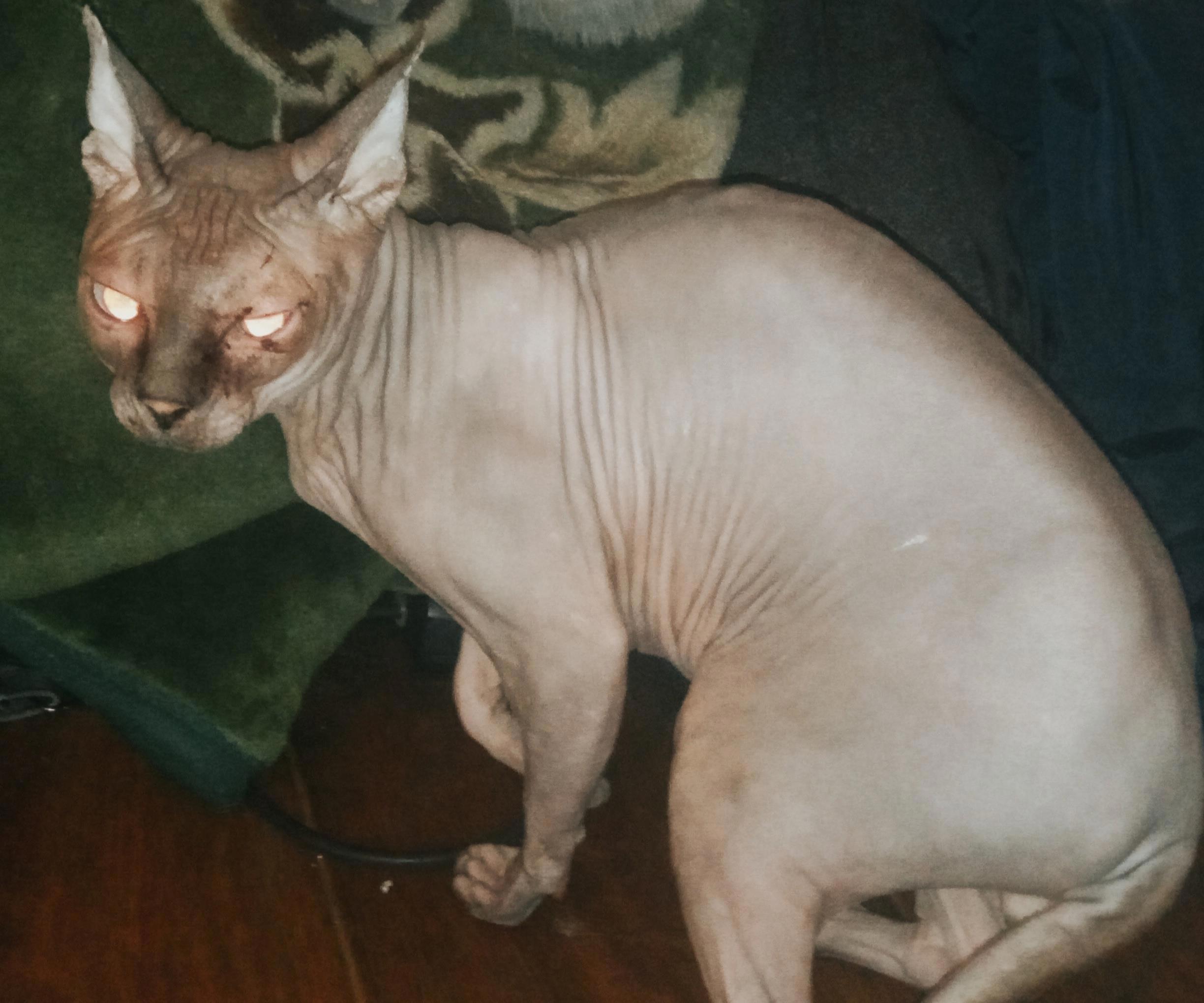 А это очень злой котик Эдик. Он у меня на передержке и перевоспитании за то, что кинулся на хозяйку и подрал так сильно, что она в больницу попала. Мы его тоже немного побаиваемся.