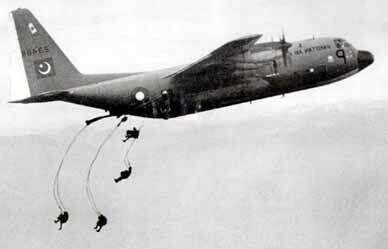 Прогремевшая в 1956 над Ближним Востоком короткая война впечатлила не только товарища Хрущева, но и пакистанских военных. "Вот бы и нам так", вздыхали они, читая отчеты о том погроме, который учинили их бывшие сахибы на египетских аэродромах. Увы, если по танкам и артиллерии пакистанцам кое-как удалось достичь примерного паритета с бывшими соседями по Британской Индии, то по части ВВС все было значительно печальней. Боевых самолетов у индусов было почти в пять раз больше, чем в пакистанских ВВС и даже песни американских советников, что "сейбры" и "старфайтеры" на голову лучше британского и советского барахла в IAF как-то слабо утешали. Поэтому в штабе маршала авиации Асгар Хана усердно рисовали один план разгрома индийской авиации за другим. Видимо, в какой-то момент рисовать очередной вариант обычной бомбежки аэродромов штабным надоело – и тут кто-то предложил вместо бомб скинуть на головы индусам парашютный десант. «А там они уже сами..»