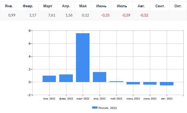 5) Инфляция ниже прогнозов. В середине лета шла дефляция.