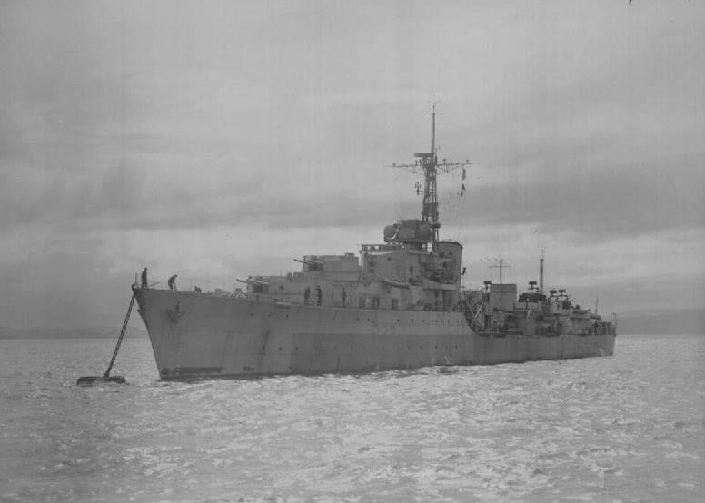На этом фото "HMS Camperdown" стоит на бочке на реке Клайд, 12 июня 1945 года.