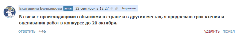 Сроки подведения итогов "Произведения по заявке" перенесены!