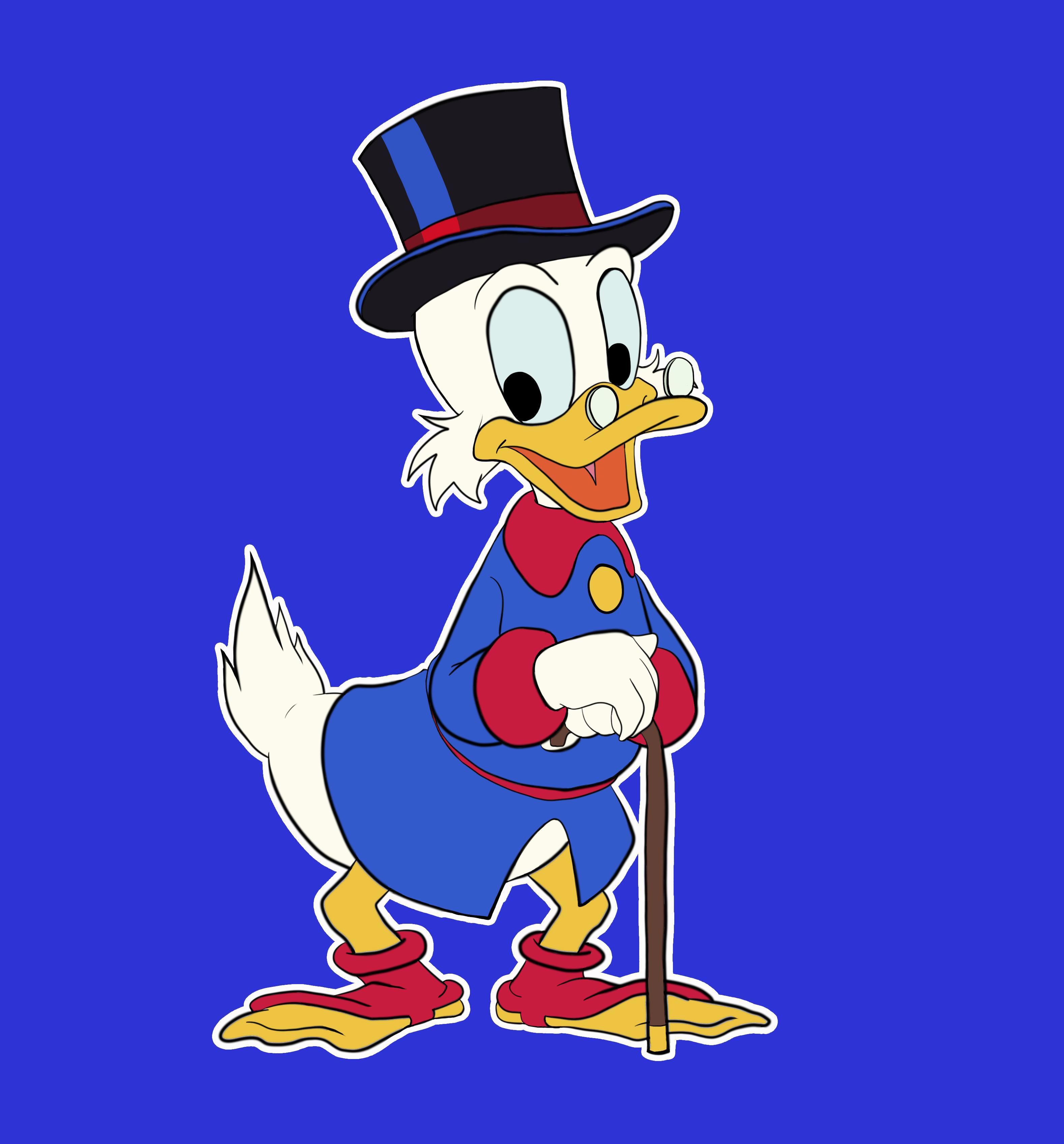 Сейчас, спустя много лет, копаясь в своём прошлом, я решил вспомнить детство и нарисовать любимого персонажа - Скруджа. Из-за того, что недавно я переустановил винду и фотошоп, я немного накосячил с лайном, но, в целом, результатом доволен.
