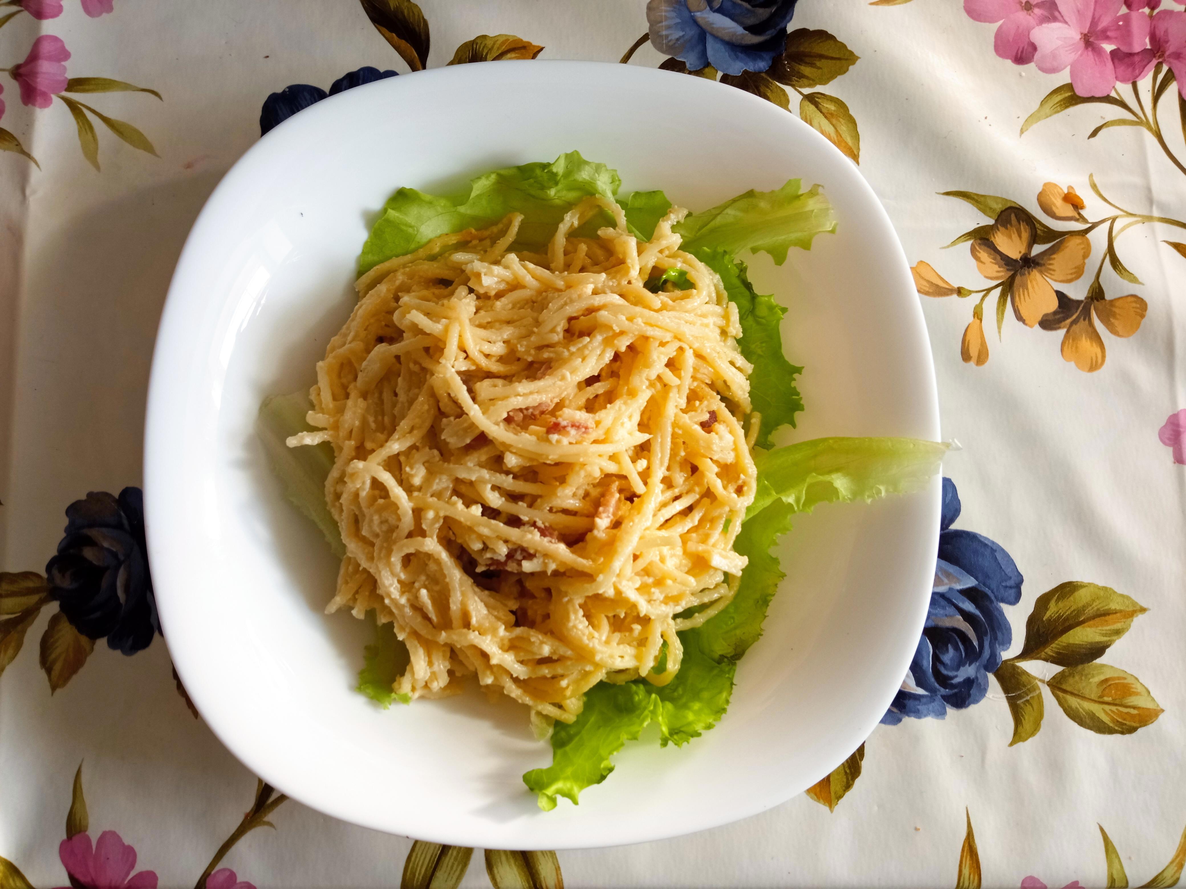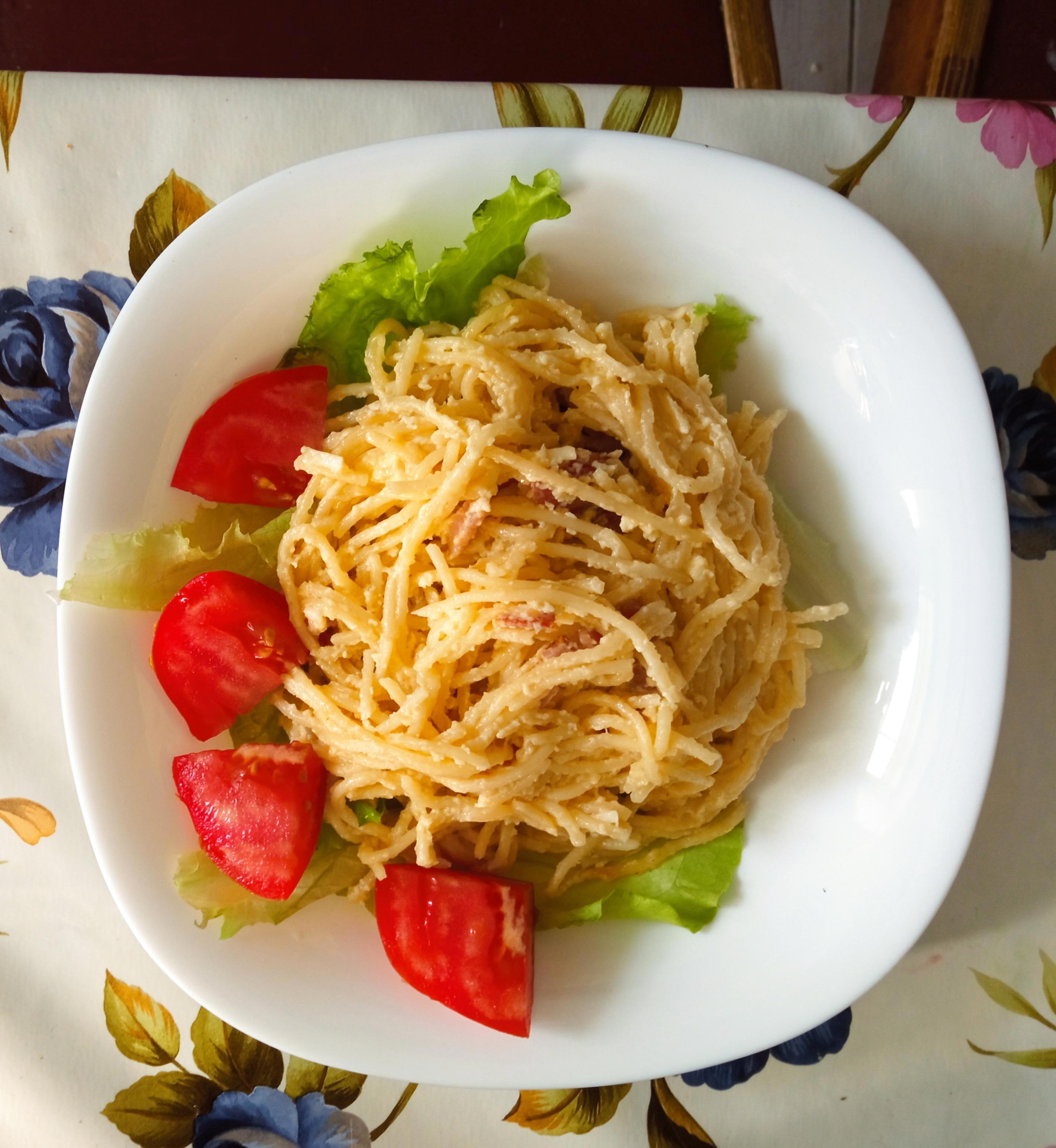 Что ж, надо так надо. Купил всë необходимое и сделал вполне близкий к ресторанному вариант. Отдельно сделал чесночно-сливочный соус, отдельно взбил яичный желток с твëрдым сыром и сервировал сносно. Фото, как водится, прилагаю.