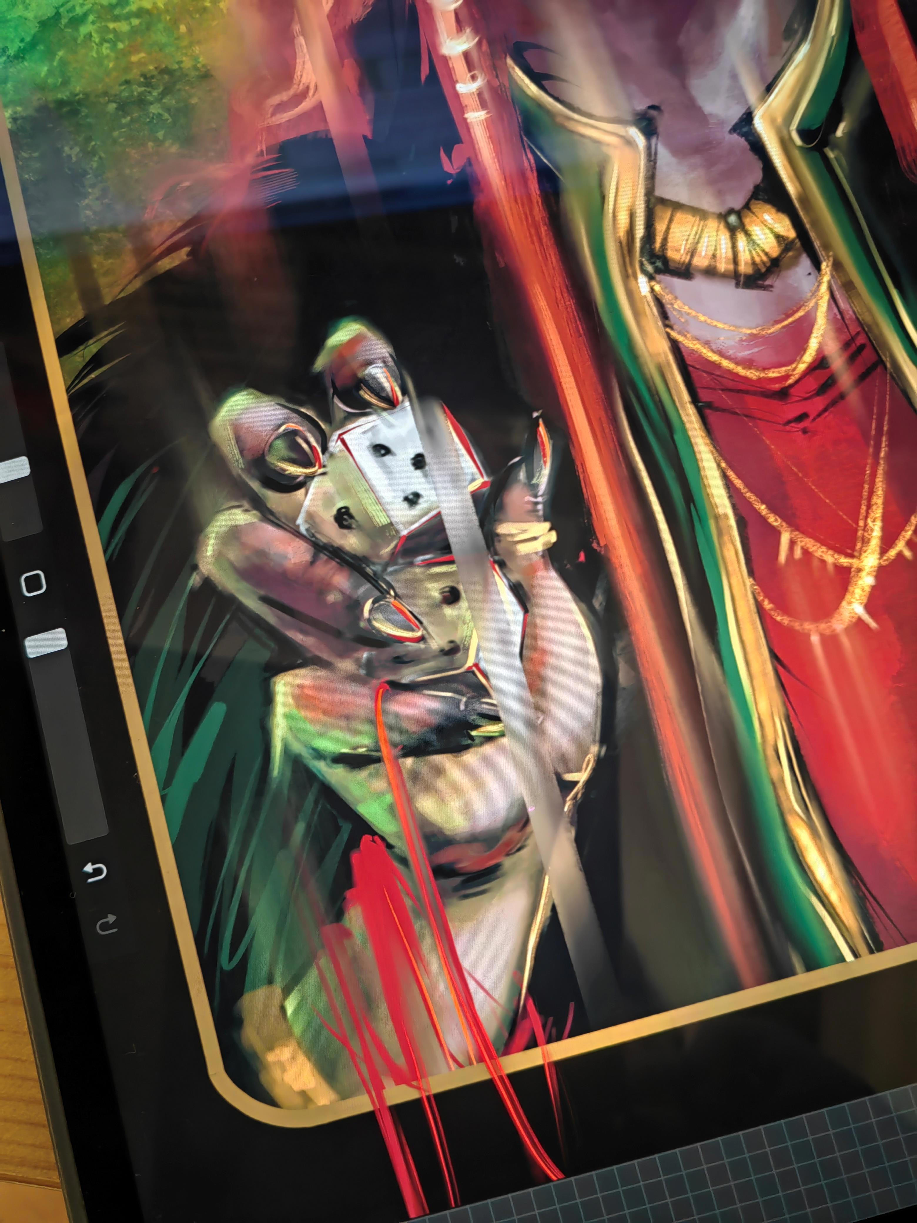 Очень интересный заказ - колода карт для настольной игры. Вот разработка первой карты.