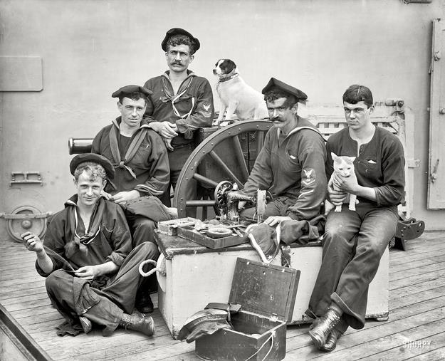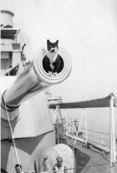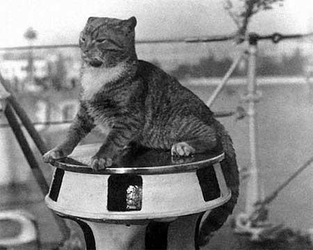 О корабельных котах - настоящих морских волках и любимцах команд можно много рассказывать, я упомяну ещё об одном, которого называли и Оскаром и Непотопляемым Сэмом, при всем при том, что корабли, на которых он был, тонули. Первым был "Бисмарк"