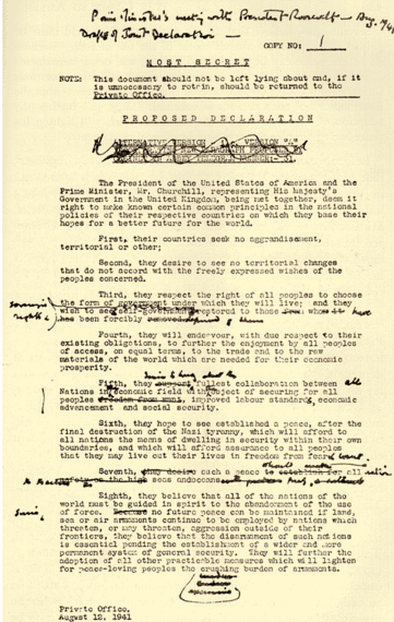 , где подписали так называемую Атлантическую хартию. Вот она с пометками Черчиля
