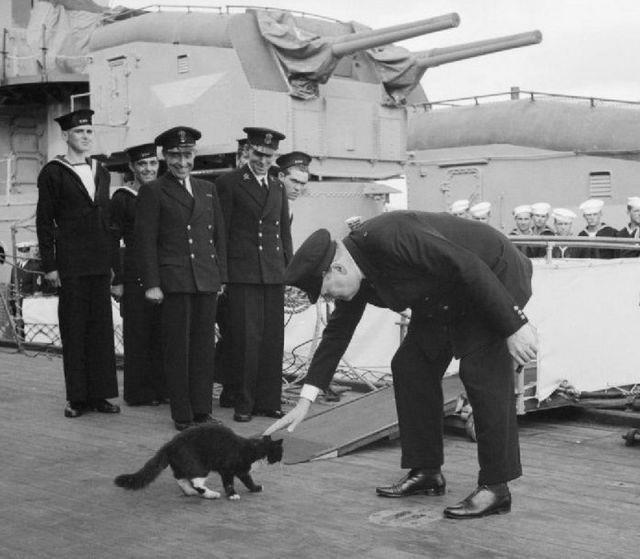 Разумеется, премьер-министр Объединенного Королевства не мог не поприветствовать такого важного члена экипажа линкора как кот Блэки