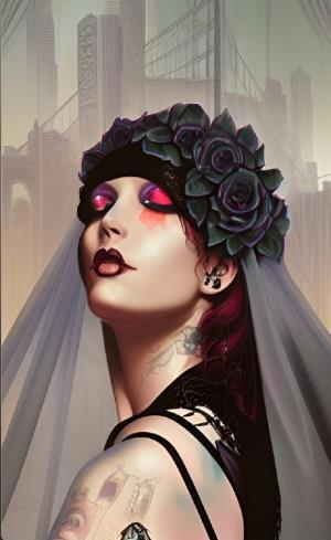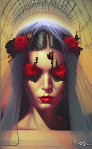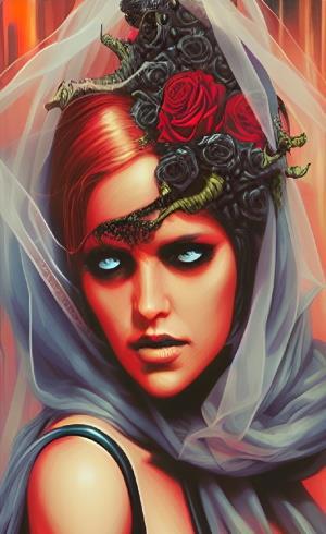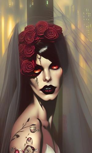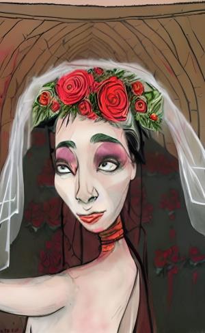 Эта тень невесты в кровавых розах - похоже, родом из нарисованной в комиксе антиутопии.