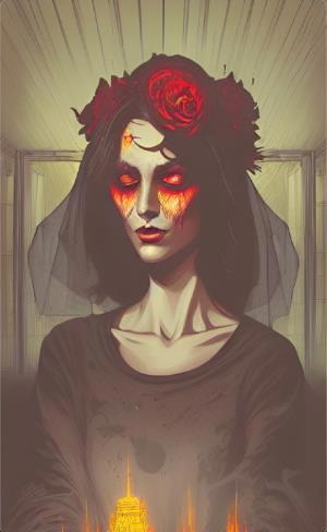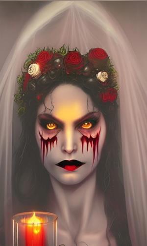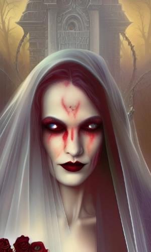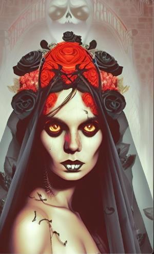 Вводные: "адская невеста", "мёртвая невеста", "невеста-вампир", "невеста из ада" - плюс уточнения по деталям. Стиль - comic. Референсы - расплывчатые старые изображения, сделанные в Вомбе же. Мне кажется, что нейросеть справилась: девы прямо очень характерные, выразительные, за каждой - целая история...