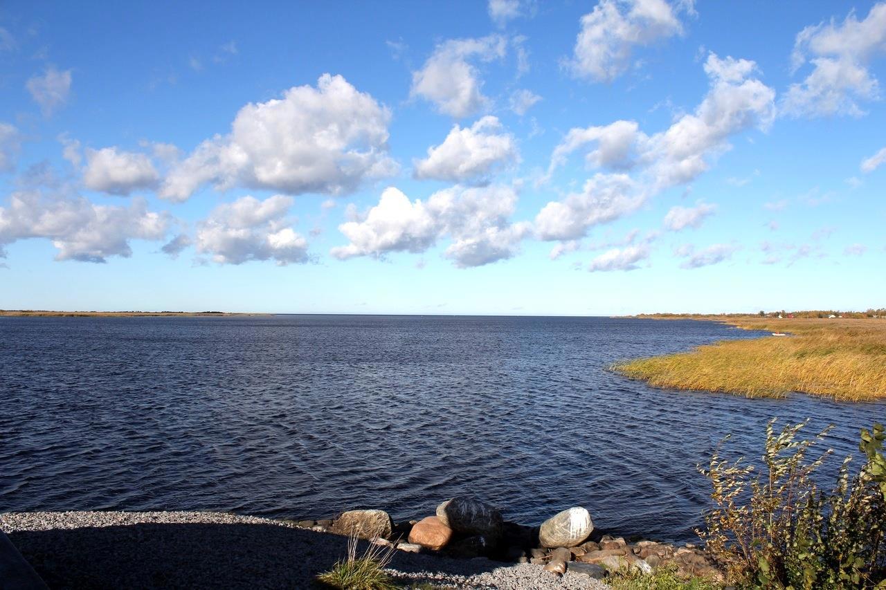 Окрестности Ладожских каналов на другом берегу реки. Слева - можжевеловая роща (увы, потеснённая коттеджным посёлком):