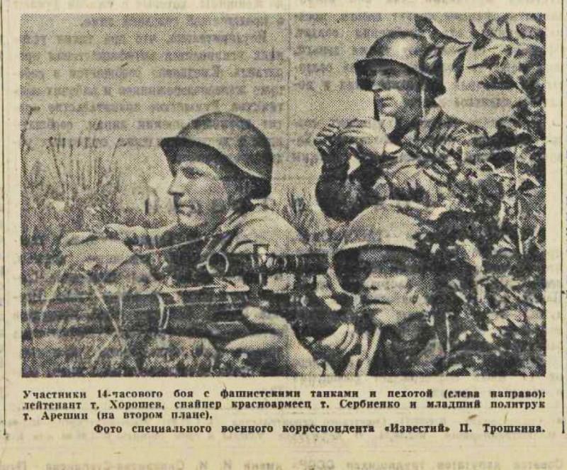 В реальности все же получилось менее трагично – и Симонов и его коллега Трошин благополучно вернулись с фронта и в "Известиях" за 20 июля 1941 года вышла статья "Горячий день", рассказывающая о бое полка Кутепова. Фотографии Трошина использовались и для других статей – в июле 1941 года таких «победных» фото в самом деле не хватало.