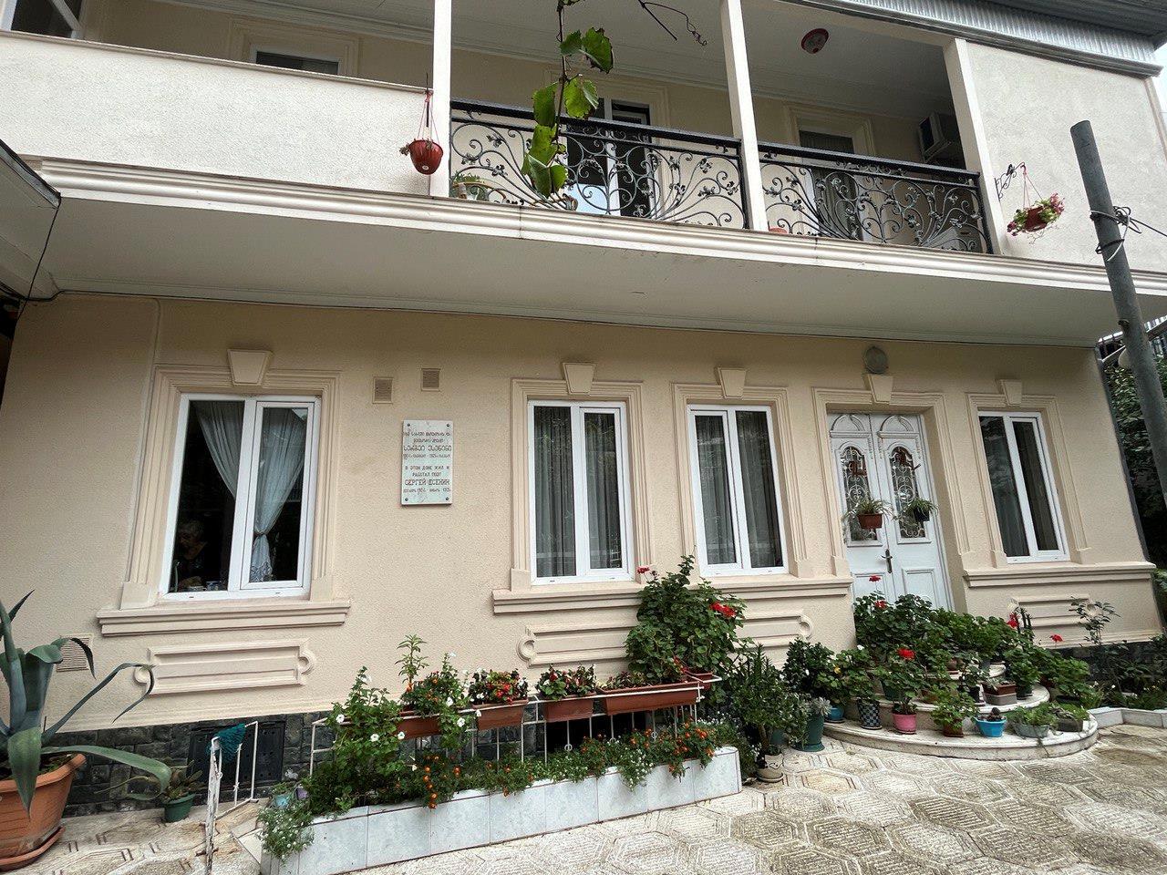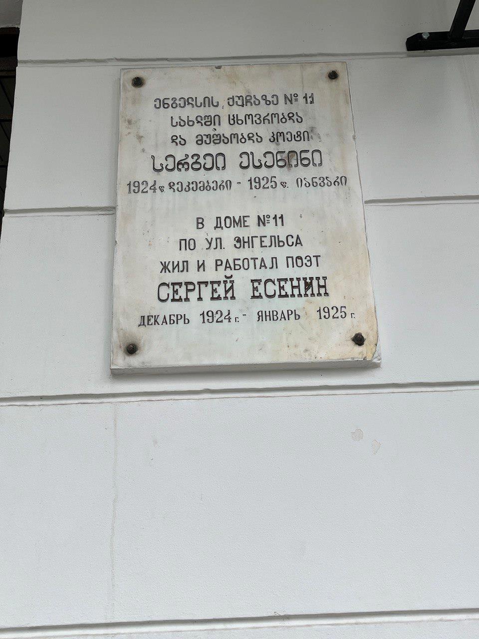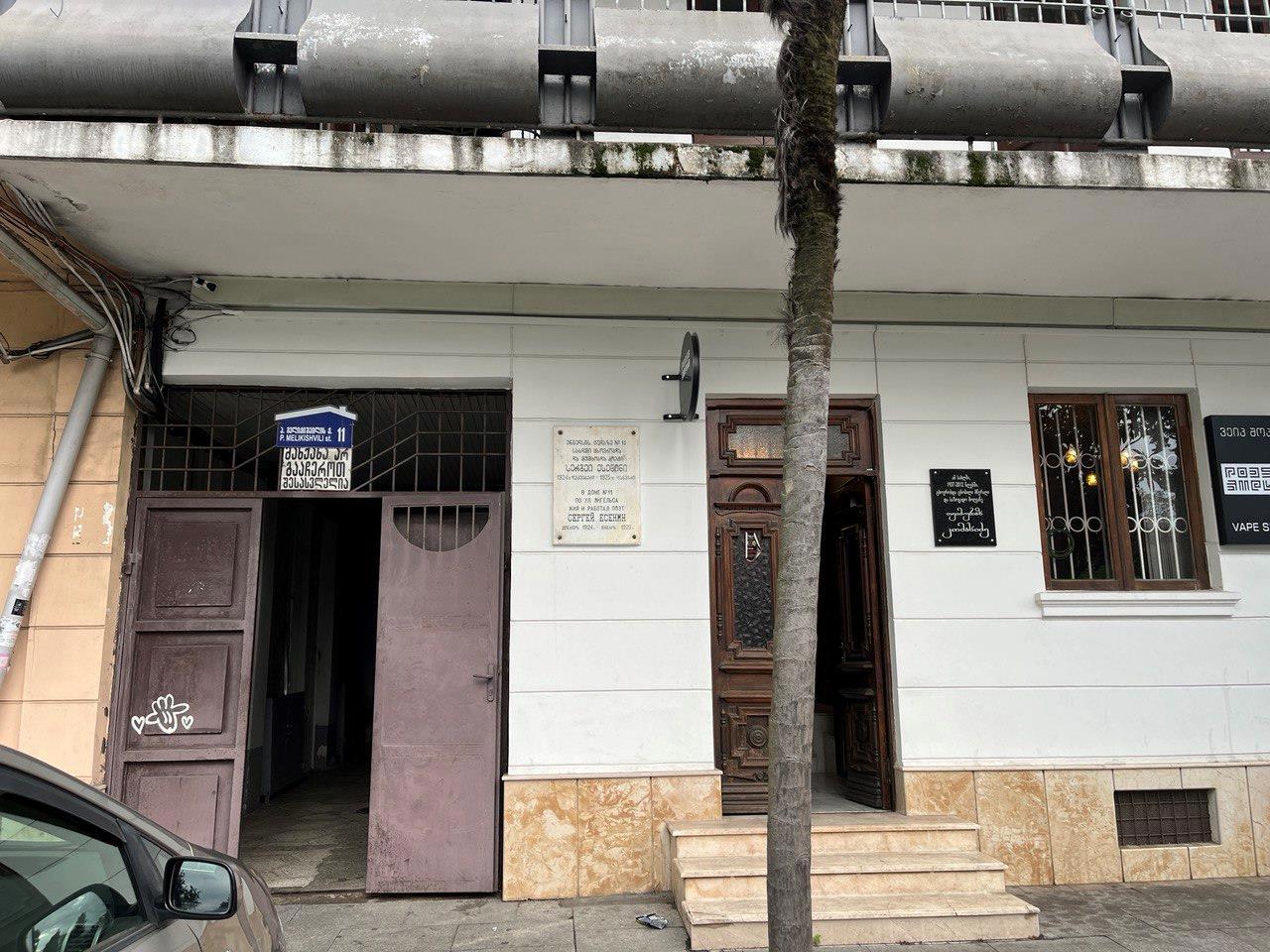 Мемориальная доска установлена на неприметном доме улицы, которая сейчас называется Микиашвили.
