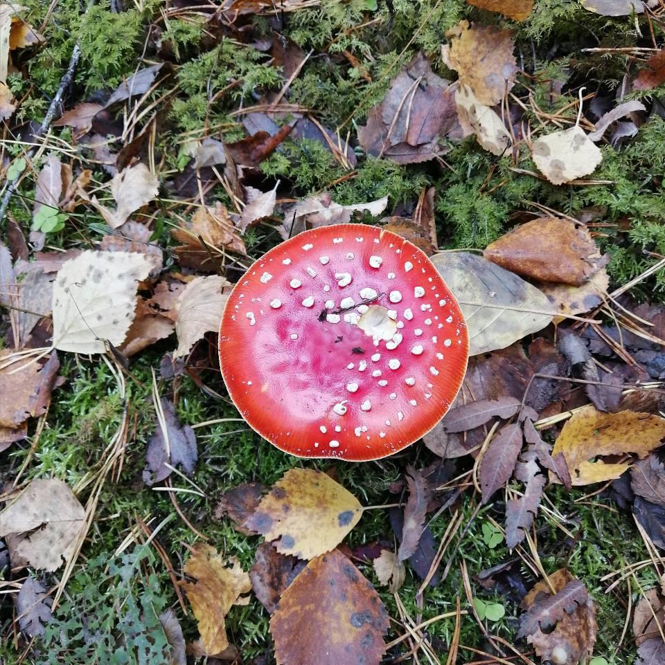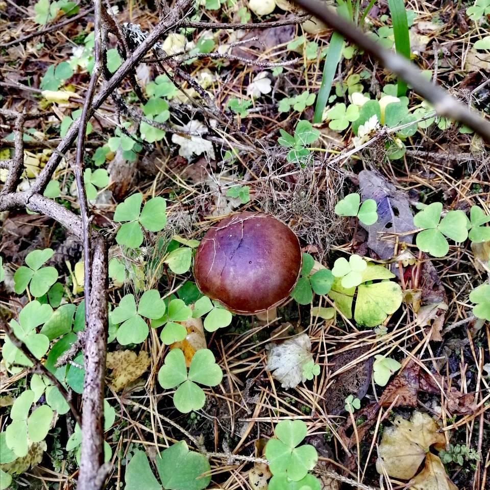Других съедобных грибов практически нет. Нашла один белый. Красивый, но червивый. Только на фотку и сгодился.