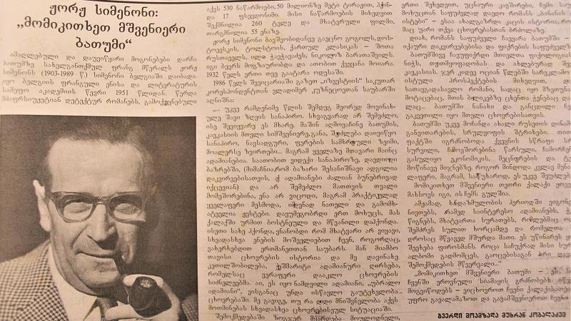 «Через несколько лет я во второй раз оказался на берегу Черного моря, я не мог иначе, я влюбился в этот край. Вот тогда я открыл для себя Батуми, всю красоту Кавказа. Разве можно забыть его набережную, порт, южное буйство красок, ласковый прибой. Но главное — это люди. Именно в Батуми я стал задумываться о психологии горцев, их таланте и самобытности », — вспоминал известный французский писатель Жорж Сименон в одном из интервью, опубликованном в газете «Известия» в 1986 году.