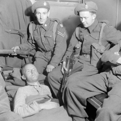 Тут то и повылезали некоторые разночтения толкований и переводов. То он с женой из Англии сбежал, то жену бросил и сбежал с танцовщицей. В подписи к фото - солдаты арестовавшие его, в тексте про 2 офицеров, а на фото 3 солдат. Зато в русской интерпретации его прозвище можно перевести как "Лорд Гав-Гав". Что англичане слушали его, не сильно веря, но смеясь.