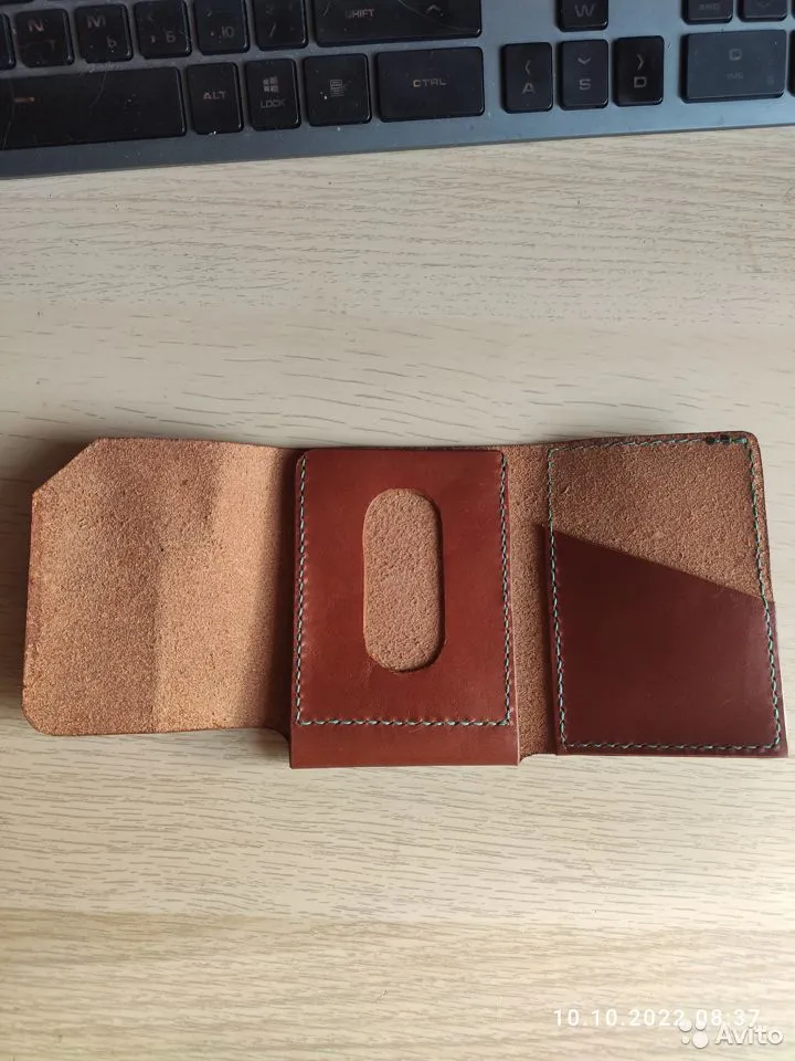 Кошелёк, без фурнитуры, вот прям совсем, совсем. Ни молний, ни кнопок, вообще ничего.