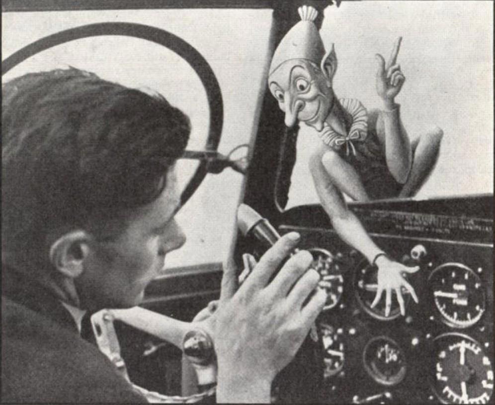 Когда-то, как и все эльфы, гремлины жили в полых берегах рядом с реками и глубокими заводями. Затем некоторые из них перебрались на скалы у берега моря и питались блинами, сделанными из желтой пены прилива. Теперь они поднялись в воздух. На прошлой неделе они отлично провели время, летая по всей Северной Атлантике, Великобритании и Германии на самолетах ВВС Великобритании и США.