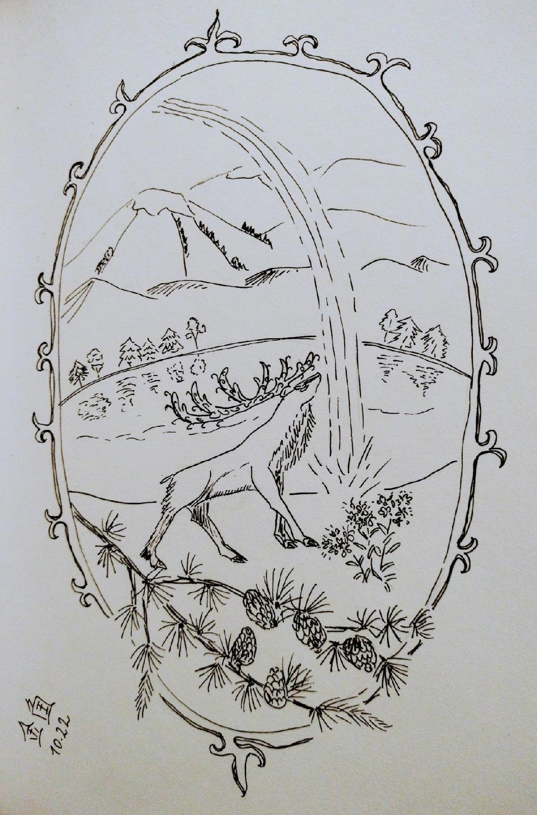 Я в хохот: ну да, я тот ещё рисователь картинок :) А потом вечером задумалась — и вот сегодня выкроила времечко, набросала вот такую иллюстрацию к моему любимому мифологическому рассказу тувинцев: Марал, прошедший по радуге. Я там редактор перевода, есличо.