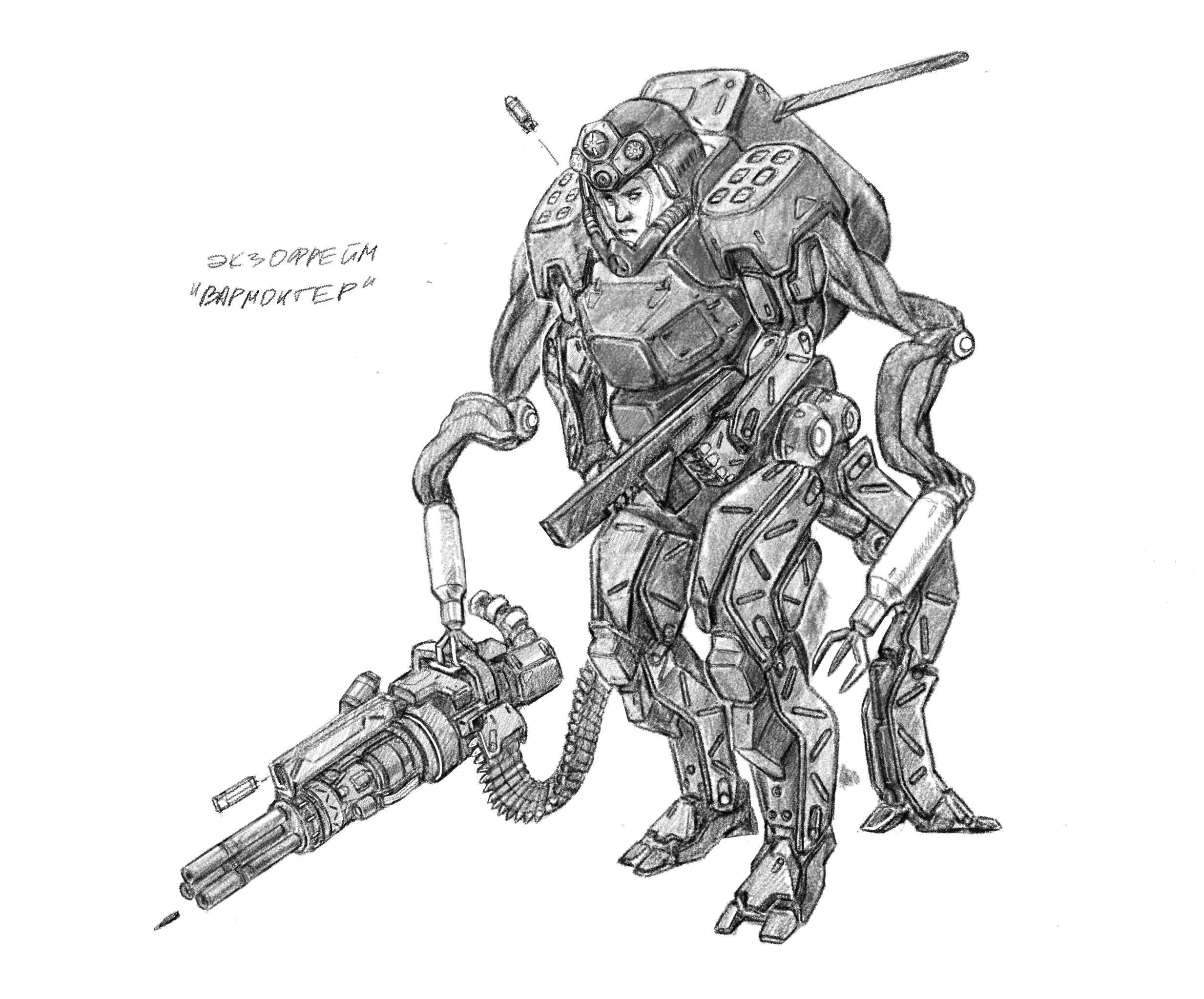 Экзоруки в армиях экстрасоларианского пространства в принципе являются наследием волны строительства космических станций. Тогда подобные приспособления в виде облегченного экзоскелета помогали строителям и командам кораблей передвигаться и работать в условиях невесомости.