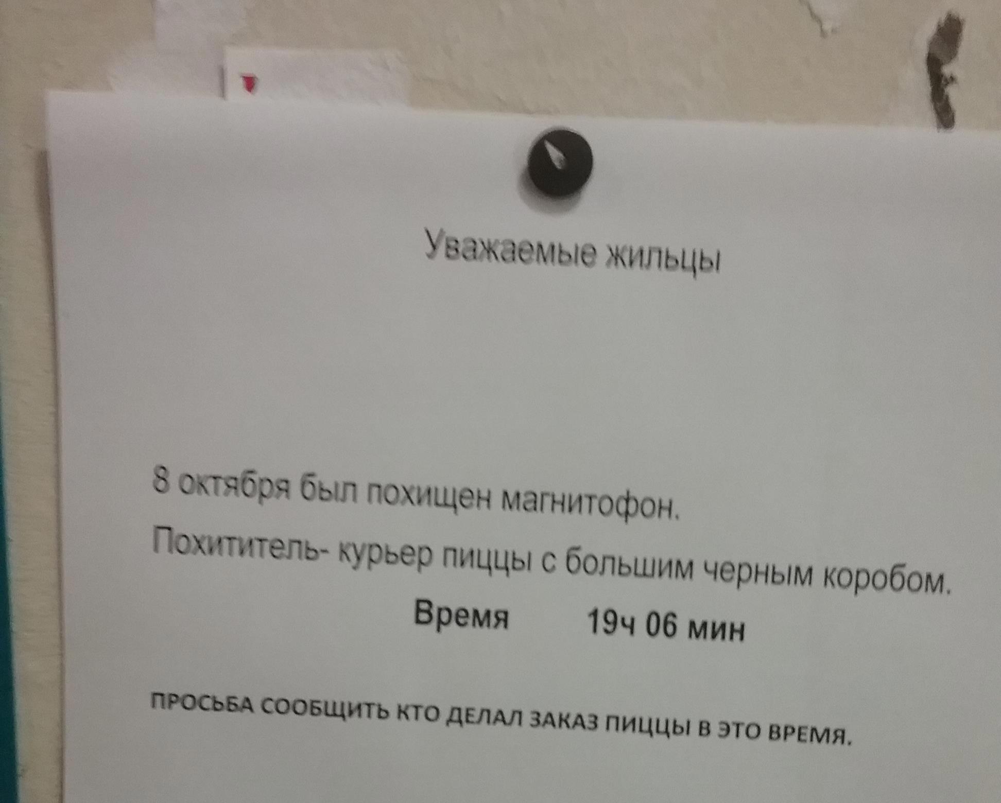 Несколько дней назад магнитофон исчез, а на доске объявлений появилось вот это: