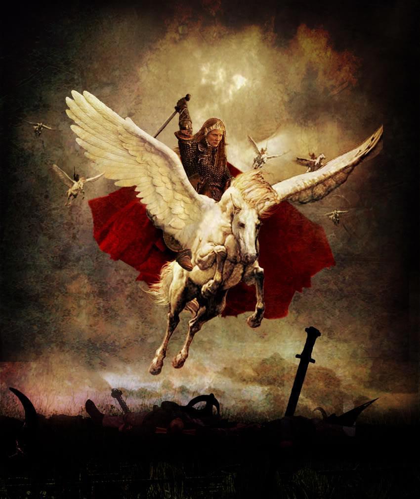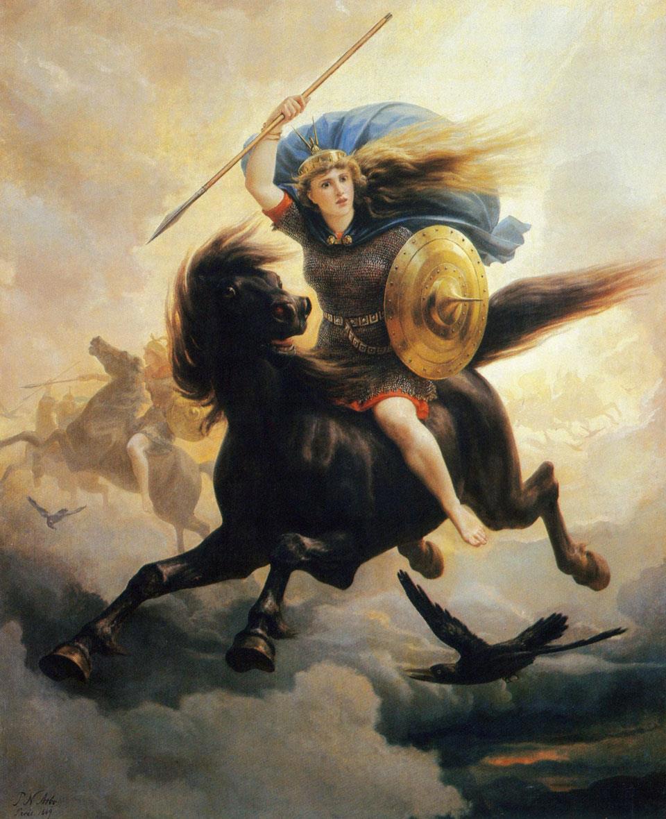 Автор: Константин ИсмаевВальки́рия (др.-исл. valkyrja — «выбирающая убитых») в скандинавской мифологии — дева-воительница, которая реет над полем битвы и решает, кому из воинов, павших в бою, попасть в небесный чертог — Вальхаллу.